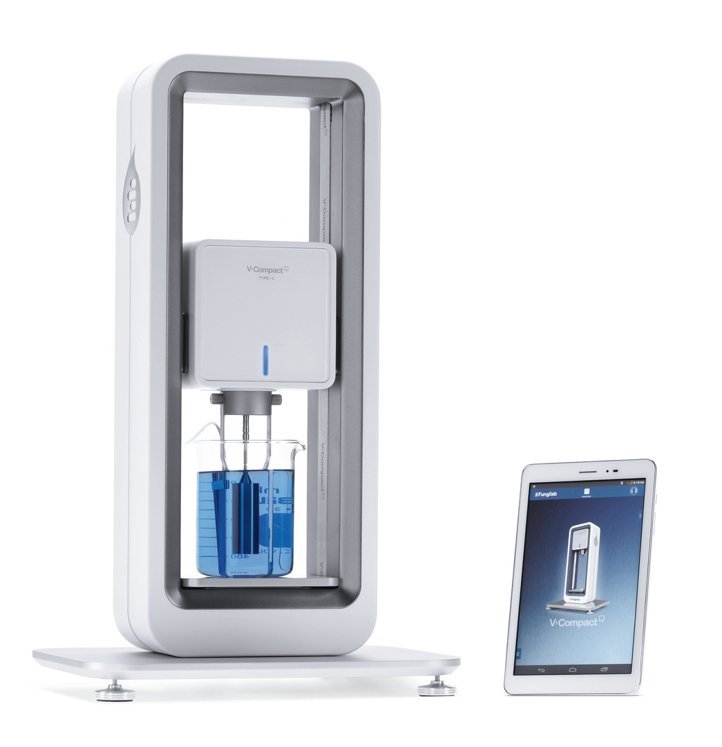 The V-Compact is a high-performance rotational viscometer that measures the flow resistance of fluids. In contrast to conventional models, the device has a digital interface and is controlled wirelessly via an app. This newly developed software provides full functionality and control over the entire instrument; all input settings, functions and parameters can be accessed on mobile devices like smartphones or tablet PCs that support the application. This allows authorised laboratory staff to remotely access the test data from anywhere.