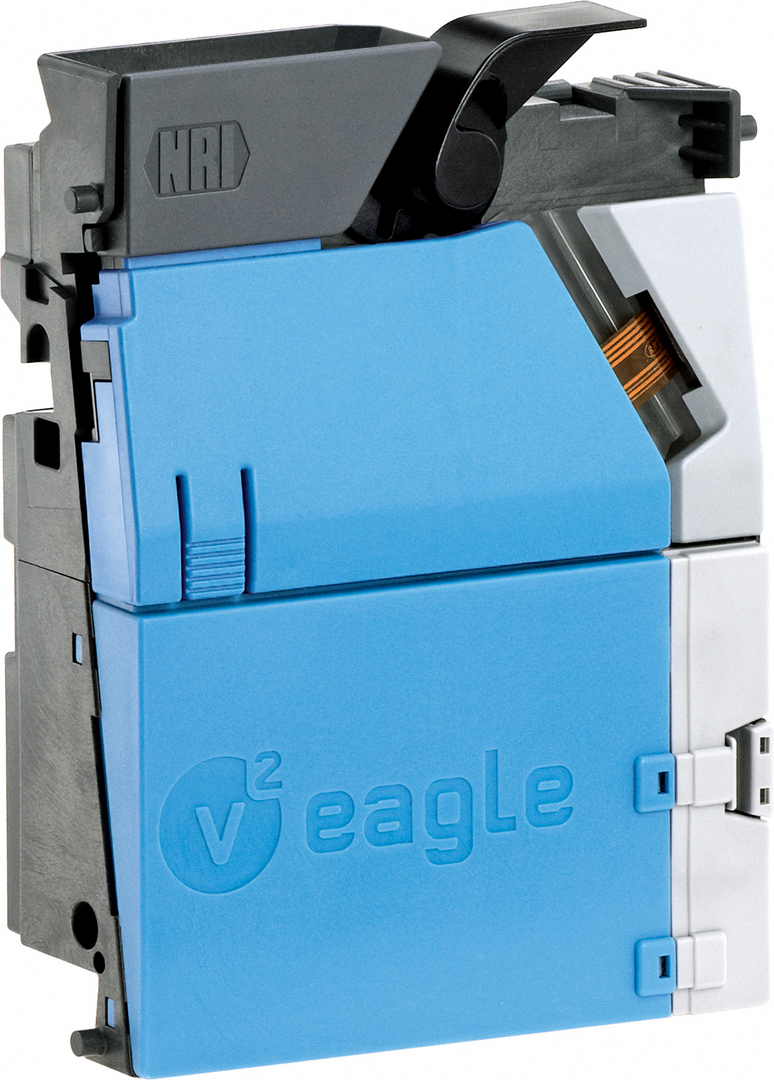 The v eagle validator is equipped with a newly developed protection mechanism against manipulation, with improved coin validation technology and with a modular, contemporary design. Due to optical string recognition, sorter control and coin monitoring, it considerably improves the safety of gambling machines. Furthermore, the validator is intuitive in operation and available with an optional sensor for the fast detection of coin jams.