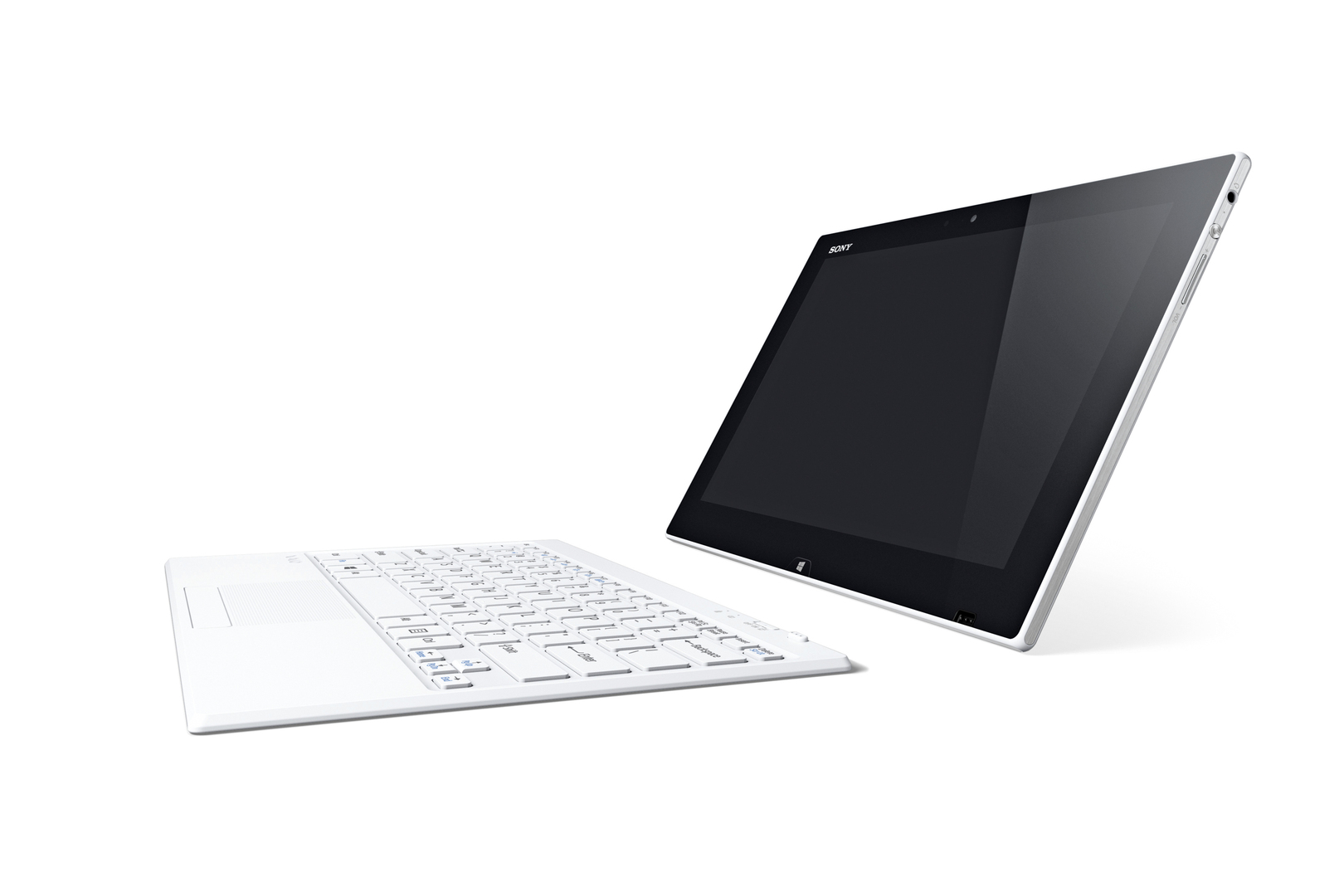 The VAIO Tap 11 includes a full-sized wireless keyboard that simultaneously serves as a magnetically attached display cover. The screen can be tilted to the desired angle on an adjustable kickstand. This stand enhances the operating convenience of the Windows tablet PC when entering data per touch or pen and viewing screen content. A wireless keyboard offers a strong degree of freedom, and thanks to the use of aluminium in the keyboard and magnesium on the back cover, the device remains very slim and lightweight.