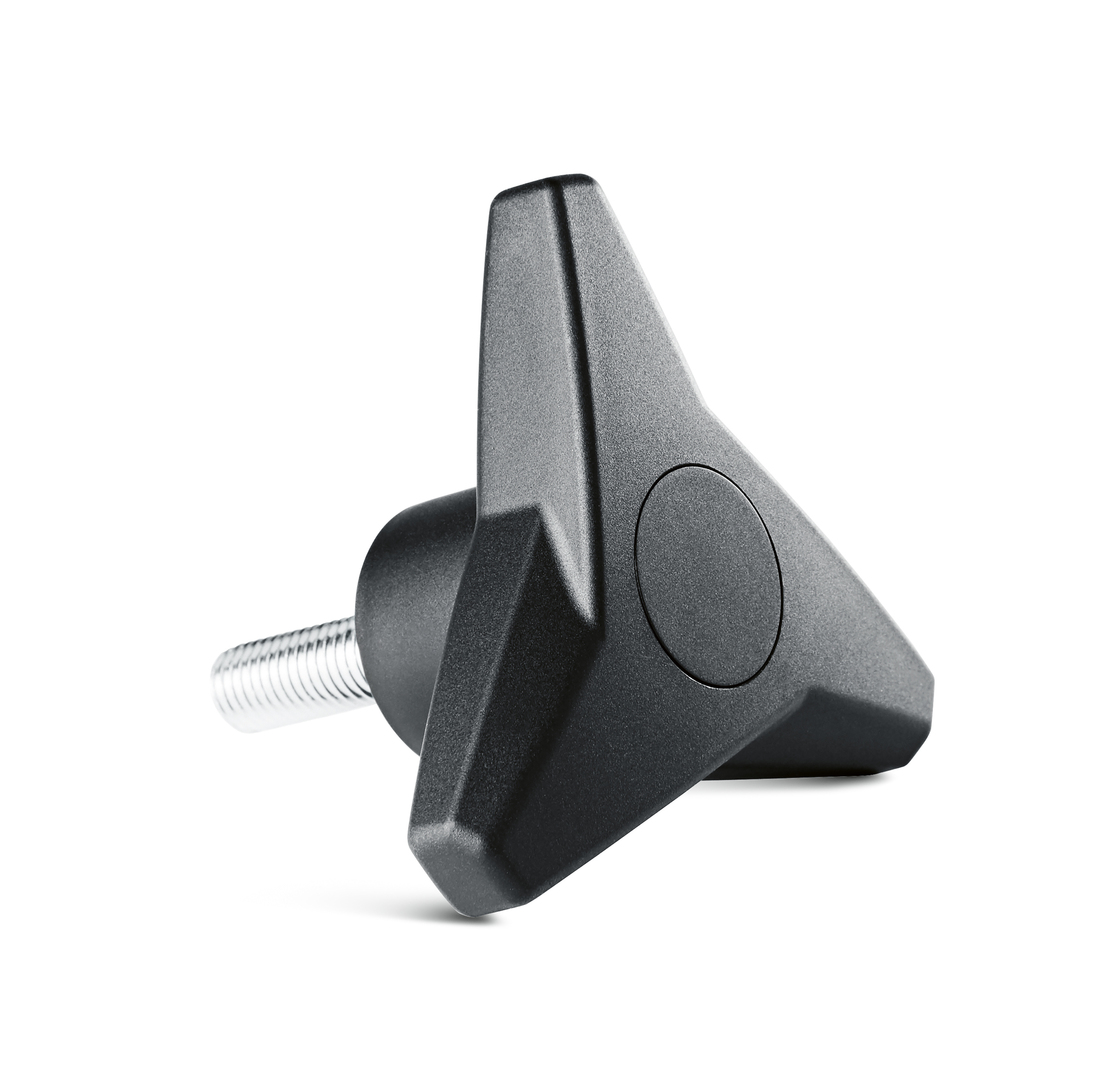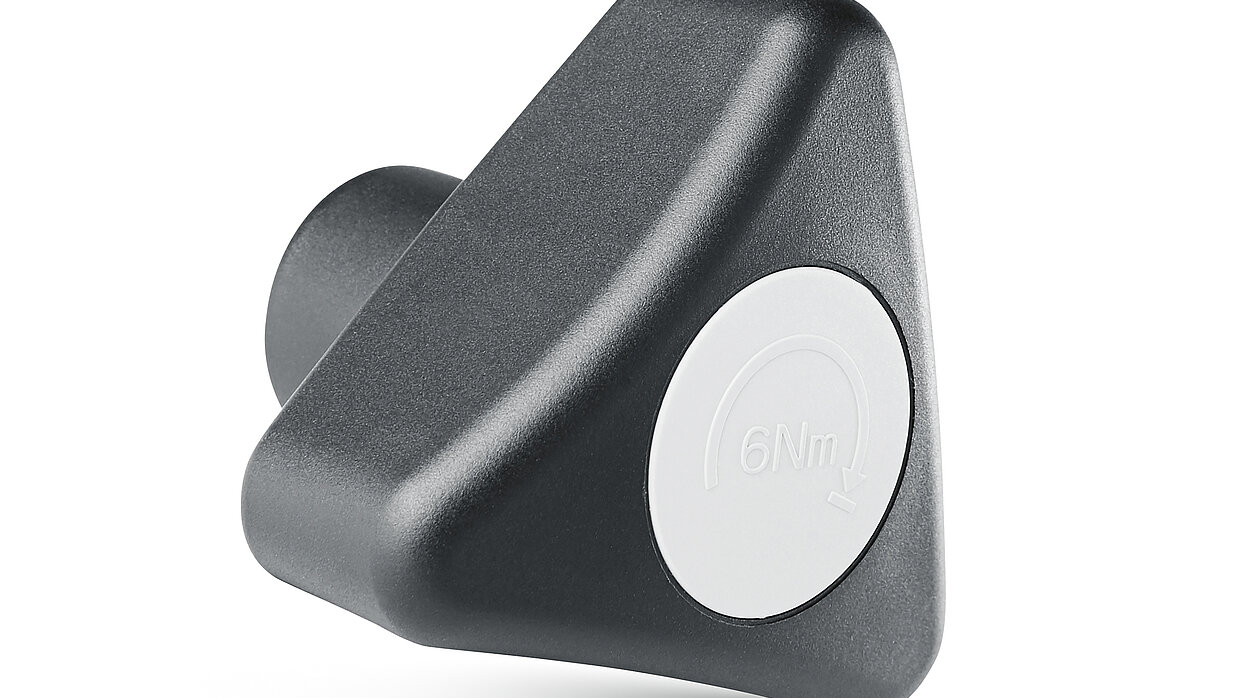The VB.839 three-arm knob provides a direct torque transmission. With its form characterised by two overlapping triangles shifted by an angle of eight degrees, it ensures a safe and comfortable grip. By using smooth surfaces and dispensing with cavities, dirt deposits are largely avoided, simplifying the cleaning of the thermoplastic knob. The centre cover cap is available in a variety of colours so that the knob may be adapted, in terms of appearance, to different environments.