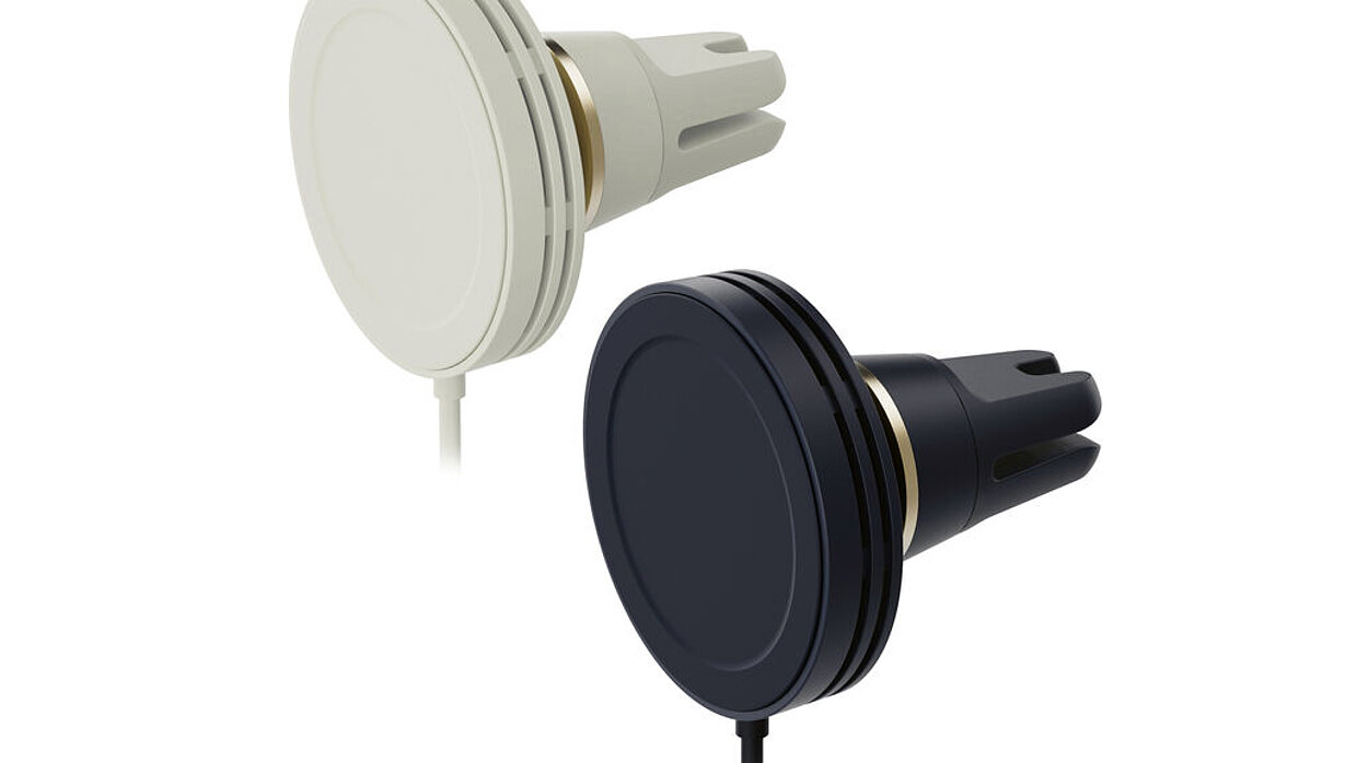 With its simple, rounded appearance, this mount blends harmoniously with the mobile phone and charges it in parallel.