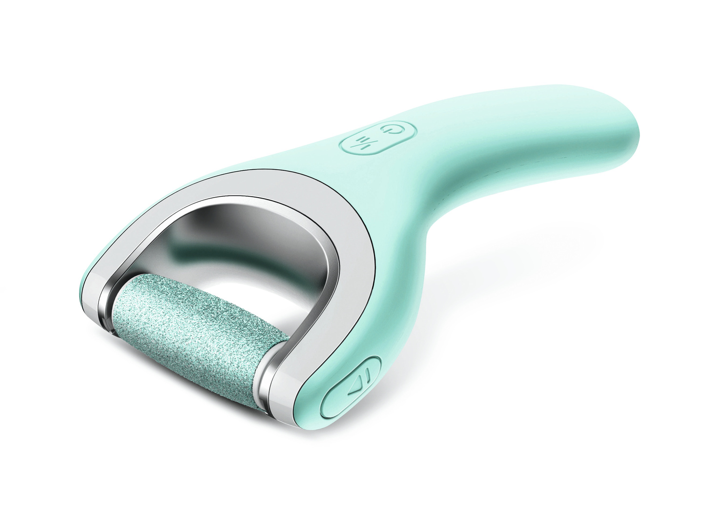 With this electronic foot file, hard skin is removed by an exchangeable rotating roller head. The whole unit is waterproof and cordless and therefore suitable for wet and dry areas. The handle part is ergonomically comfortable to hold; the angled head ensures precise operation. It is not necessary to use batteries since the device is charged on a docking station.
