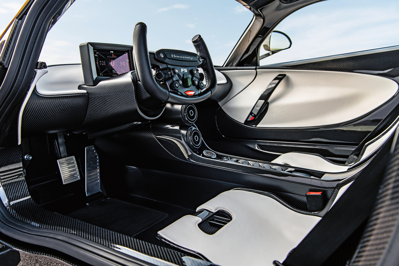 The exterior design of the Venom F5 is powerful, immediately identifying the vehicle as a supersport car. Inside, the user-centric cockpit design amplifies the intense driving experience.
