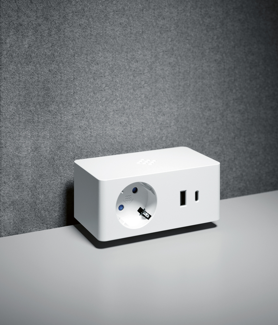 VersaQ is a stylish power unit designed for supplying power and data. The unit includes a socket and a USB port. Moreover, it offers the possibility to charge a mobile phone through a Qi wireless charger module as well. Together with the standard option it offers in the “hub” version a powered docking station where, with one single cable, users can get access to a network, an additional screen and data. Its minimalistic design makes VersaQ integrate easily into a wide variety of environments such as offices, co-working spaces or hotels.
