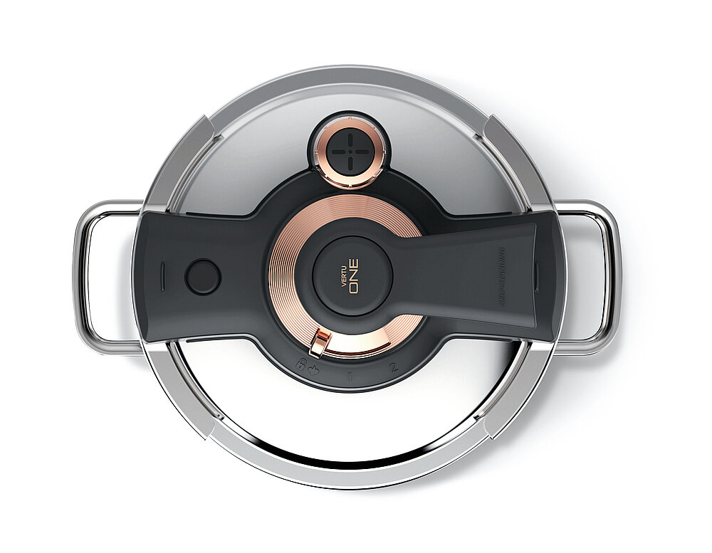 The Vertu One emerged as a pressure cooker with an enticingly novel interpretation. Its overall convincing design epitomises all the advantages offered by this approach toward cooking food. Durable, high-quality materials merge with a highly convenient operation that is self-explanatory and intuitive. The design of the handle makes this cooker both functional and safe. With its aesthetics, it embodies the enrichment of any kitchen.