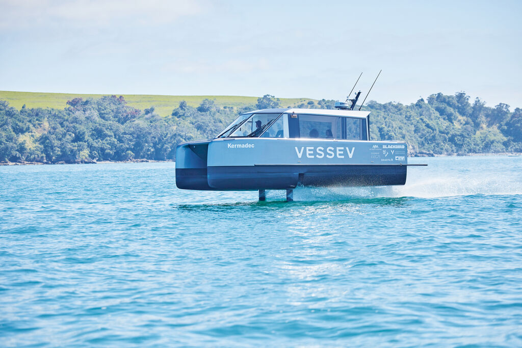 The VS—9 hydrofoil impresses with its functional minimalism and clear lines. The industrial design language and all-round cabin glazing create a striking visual identity.