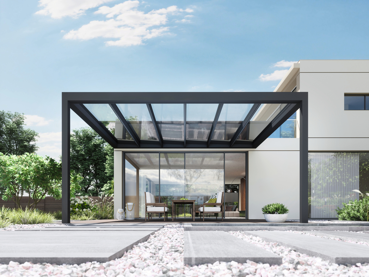 This glass roof system owes its elegant appearance to a consistent design. The wide range of convenient modules enhances the living environment.