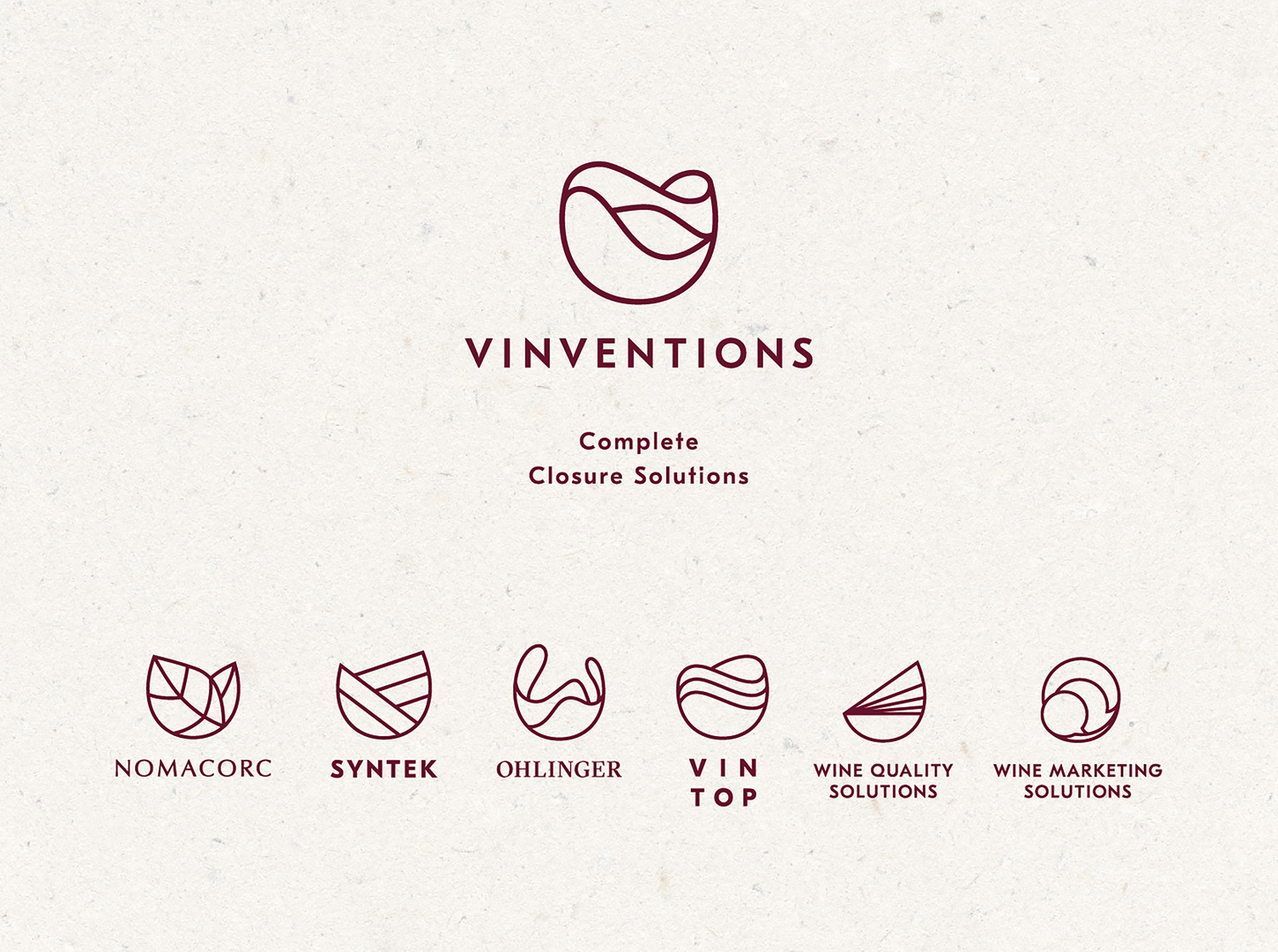 Vinventions is an international company which provides closure solutions for wine bottles. As part of the redefinition of the company, the challenge was to design an overarching corporate design style as well as six brand designs for different product lines. These highlight the specific character of each individual line and show clearly that they are part of a superordinate brand architecture. The new logo shows the stylised swirling of wine in a glass and thus sums up the moment which embodies the collaboration between vintners, wineries and Vinventions. An extensive design manual defines the use of the logos, typography, imagery, colours and navigation, for both digital and analogue media.