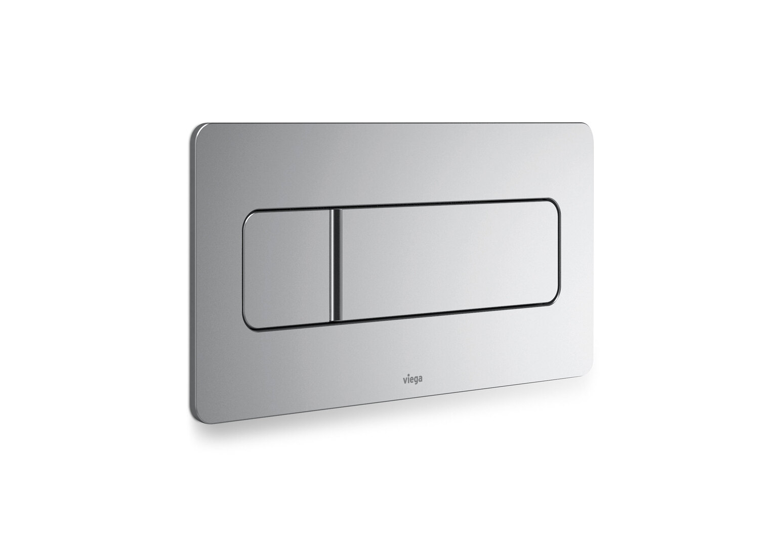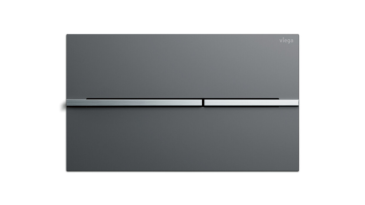 The Visign for More 105 toilet push plate combines well-fitted functional elements and flowing surfaces into an integrative product aesthetic. A milled groove separates the push button area into a small and a larger surface for full flush or water-saving eco-flush. The functions are thus visualised in a self-explanatory manner. Solid yet exuding a light impression, the construction made of surface-refined metal, white or black glass meets the necessary hygienic requirements and represents the durability of the materials used.
