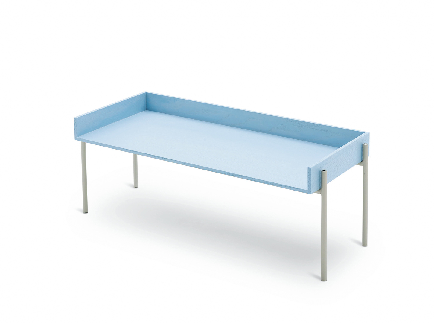 Vivlio is a flexible shelving system. Thanks to its framed shelves, objects can be both displayed and concealed, depending on whether the open side is positioned facing the room or the wall. The shelves are available in three different sizes in pale blue, black and a natural tone. When combined with the black, grey or cinnamon brown frames, this results in a large number of different arrangement options. The frames can also be turned in order to vary the space between the shelves.