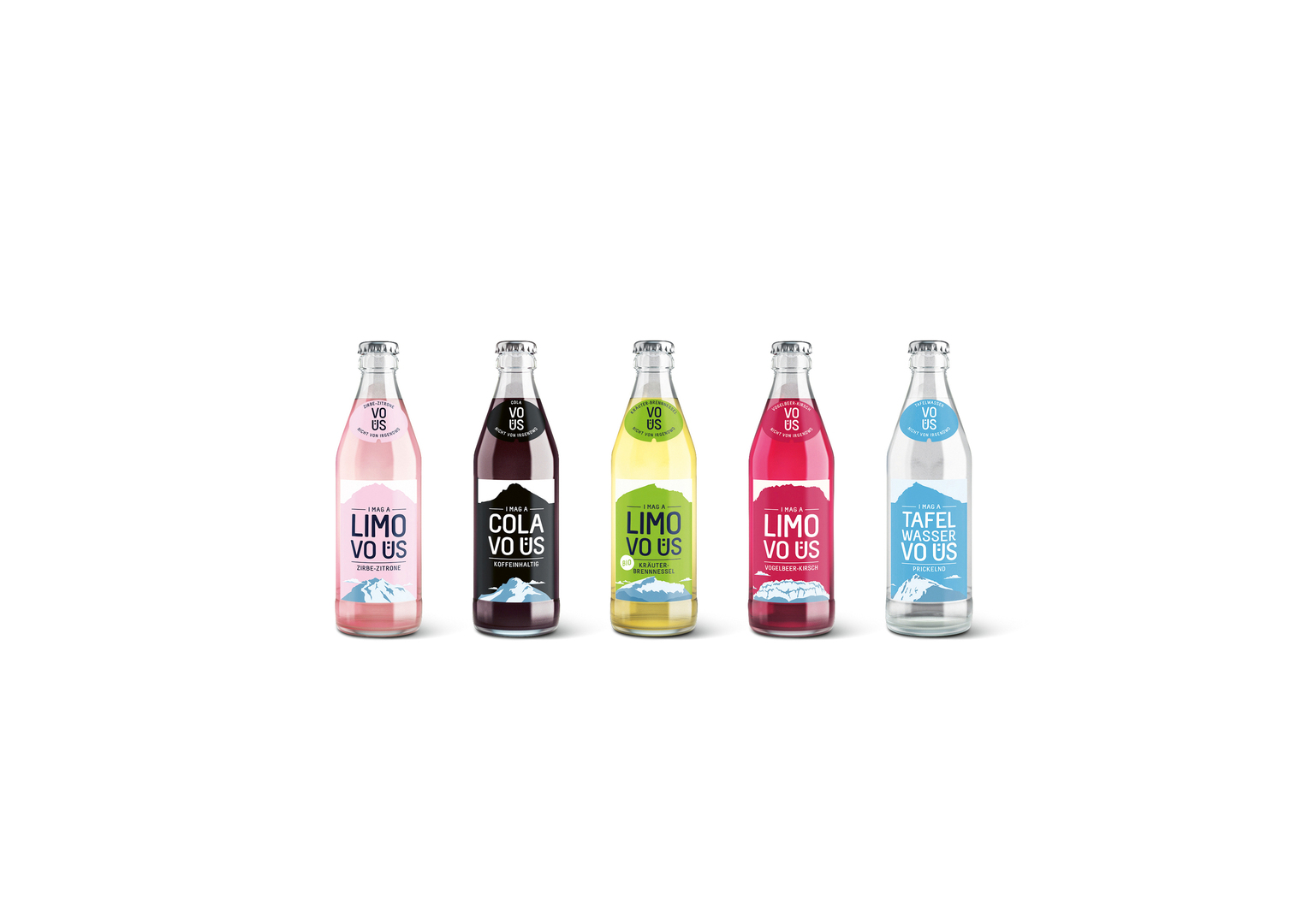 The VO ÜS soft drinks brand impresses with its clear positioning as a regional brand. This regional connection has been consistently imprinted in a charming and convincing manner across all areas of the brand identity – from the product itself to its name, the claim and the entire design appearance. Imbued with pride in the homeland of Vorarlberg, this lends the brand a strong and uncompromising charisma, which is further emphasised by its distinctive and clear look. In combination with the somewhat reduced, systematically structured brand design, the soft drinks have emerged with a homogeneous brand image that should get them a lot of customer attention on retail shelves.