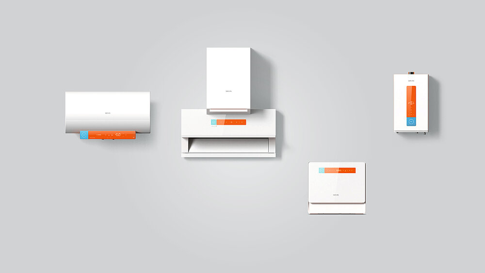 The WAHIN Contrast Series product family is aimed at a young, active, fashion-conscious target audience. To appeal to them, a user interface was created that features the colours blue and orange with high saturation. The areas for interaction are clearly separated: the blue area indicates the voice control function and gives a visual response in the form of a blinking light when the user makes a voice command. The orange area is for manual input. In combination with an app, users can freely choose how intensively they want to interact with the products.