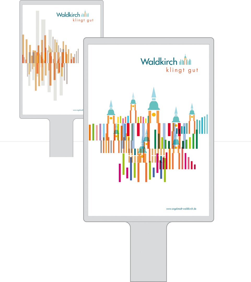 The German town of Waldkirch has an organ-building tradition that extends back more than 200 years. The town is internationally known for its outstanding craftsmanship and continues to be an important centre for the pipe organ industry. A new visual identity has been created for the town to meet today’s marketing needs. The specially created emblem is more than just a visual representation of the town’s name; it also acts as a central brand element. The resulting logo concept uses a coding system which depicts both a sense of excellence that transcends generations and the city’s many cultural offerings and sites.
