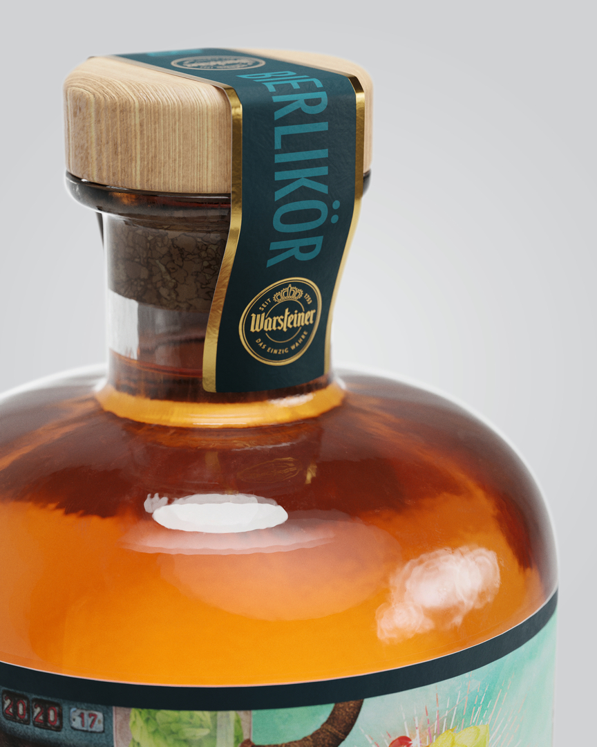 With this new design concept for the drink called Bierlikör (beer liqueur), the Warsteiner brand immerses consumers in a fantasy world surrounding the essential ingredient of hops. It tells a story between “Alice in Wonderland” and the character from “Charlie and the Chocolate Factory”, combining a love for hops with a desire to travel and dream, a yearning that has been growing due to the pandemic. Hops are at the centre of the story as a kind of “Holy Grail”, shining in all directions. The processing is visualised by a machine that extracts the essence from the hops. The drinking tradition is reflected in the typical glass shape and the cream-topping.