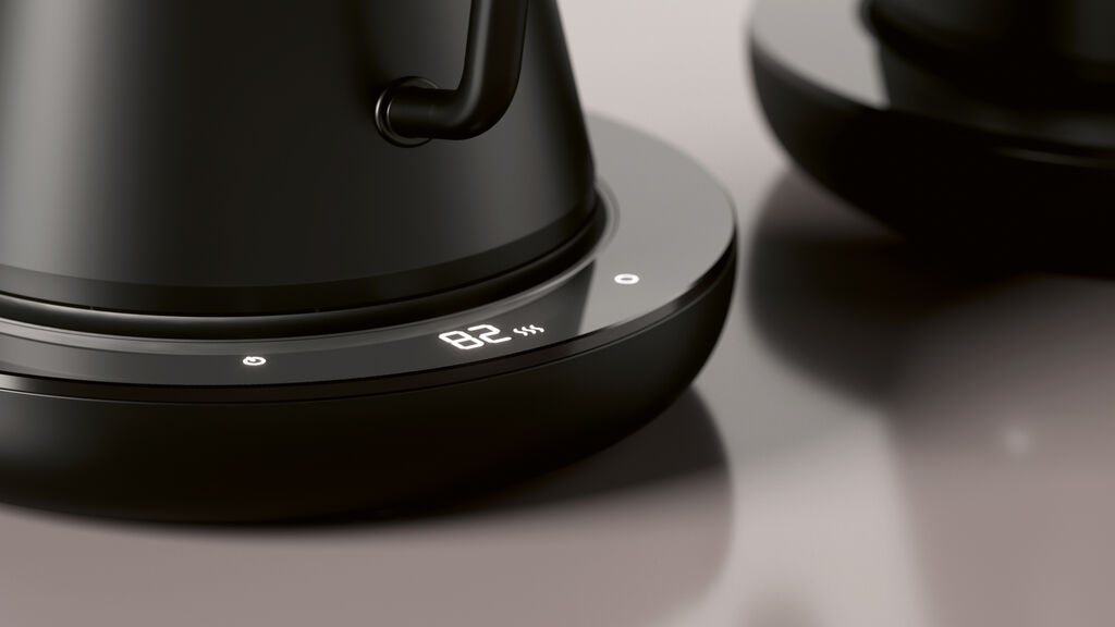 The Water Kettle combines the design of a classic teapot with modern technology. The elegant gooseneck is set low on the pot for safe pouring and thanks to a heat-resistant silicone loop, the top of the pot can be conveniently removed. “The high-quality materials as well as the charming contrast of dark brushed metal and shiny stainless steel give the kettle an elegant aesthetic. The filigree design also combines today's technology with nostalgic elements,” the jury found. This impression was also consistently continued in the design of the heating plate with integrated temperature display - it reminds of a small tray.