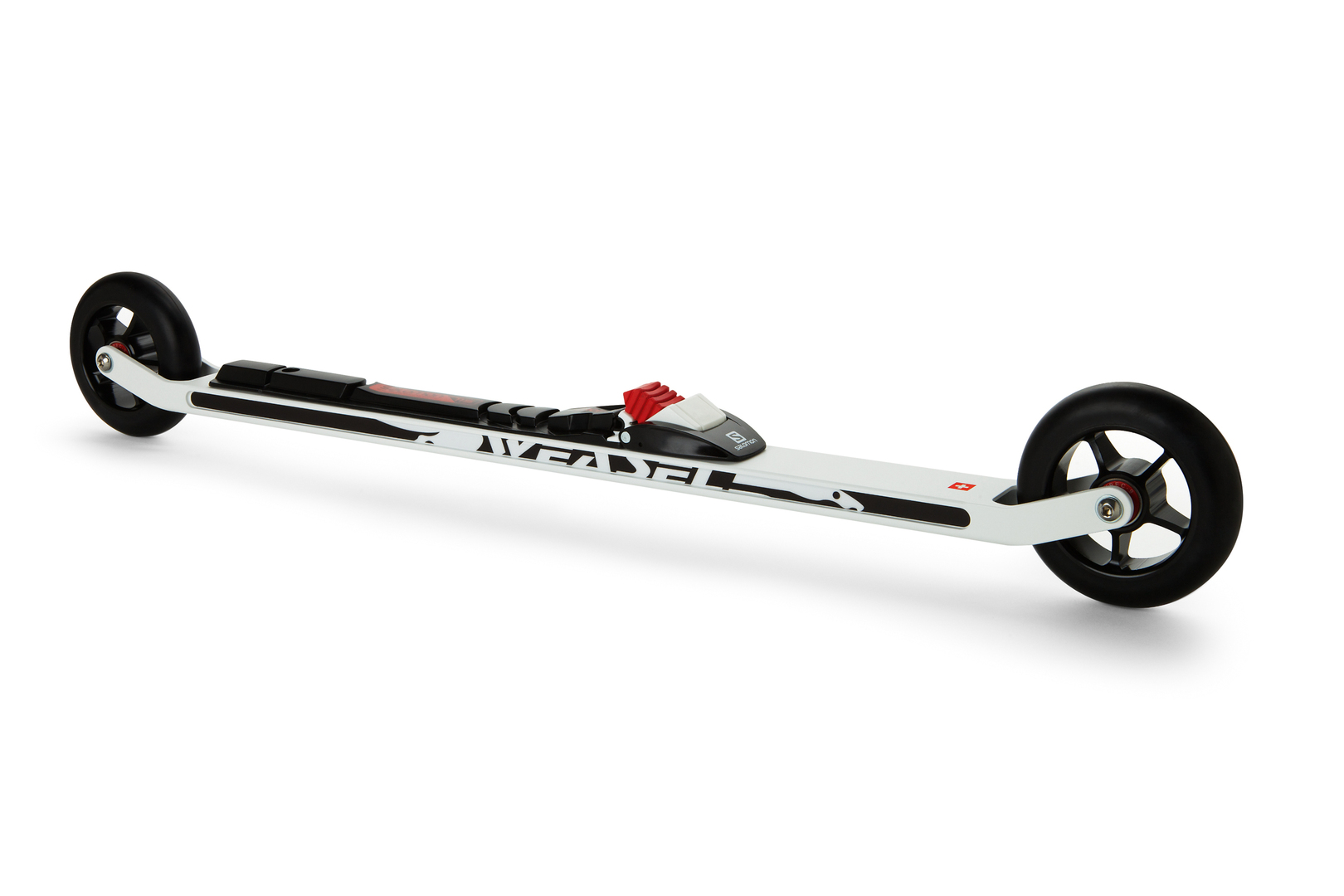 The Weasel Marathon rollerski offers cross-country athletes ski-like properties on two wheels thanks to an optimised frame geometry, construction and material selection. The long wheelbase and the lowered centre of gravity guarantee a high degree of stability and directional guidance during the gliding phase. The agile frame design is free of sharp edges and transmits the load distribution in an optimal way avoiding strain peaks.