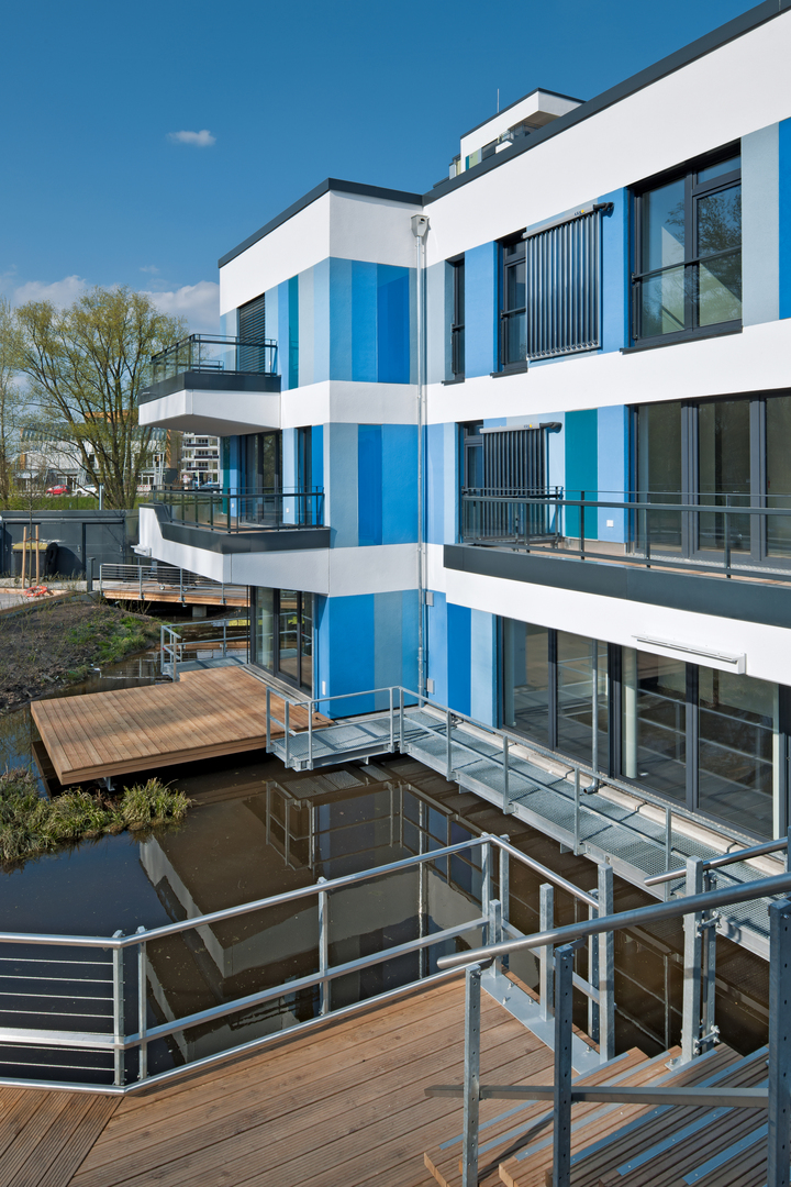 weber.therm style Glas is an innovative glass facade system that is based on proven composite thermal insulation systems. This makes the construction of facades with glass possible. Saint-Gobain Weber, a manufacturer of building materials, has succeeded in bonding large-format glass elements on a thermal insulation composite system, thus avoiding the thermal bridges of a curtain wall construction. The glass elements are available in numerous different colours and patterns.