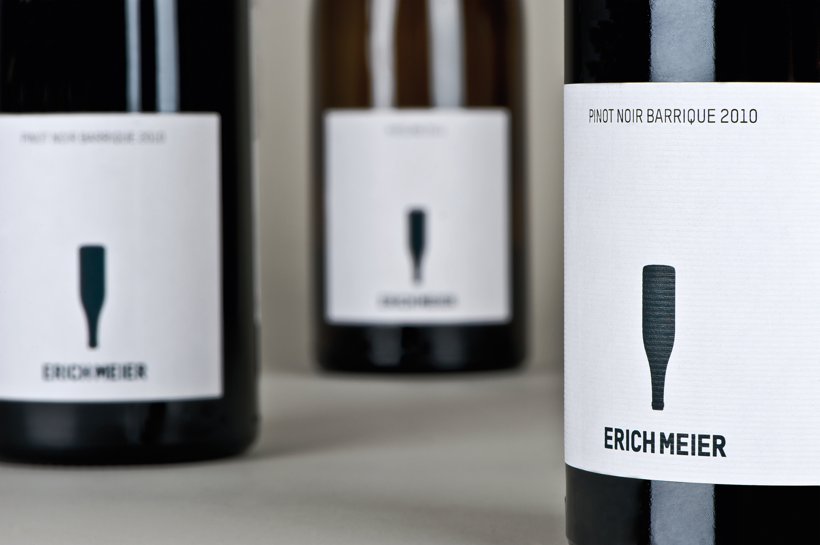 The brand design for the Erich Meier vineyard reflects the daring spirit of the winemaker: with his joy of experimentation he sets the traditional vineyard on the Lake of Zurich on a new course. An upside down wine bottle reminiscent of an exclamation mark, the logo represents this independent spirit and also the balance between perfection and love of experimentation. The logo forms the core of the distinctive brand identity that includes wine labels, a website and printed matter as well as the signage that guides visitors through the vineyard.