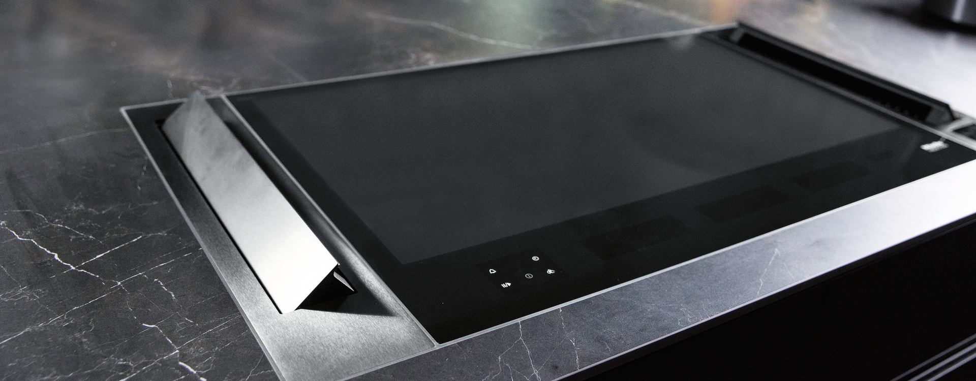 The WESCO Basso Flex is a cooktop extractor mounted on the left-hand and right-hand side next to the cooktop, silently extracting cooking fumes downwards. The flush-mounted and space-saving design can be combined with the desired cooktops regardless of the manufacturer. Furthermore, the WESCO Basso Flex has a smart control panel, removable grease separator units, as well as an autorun function that automatically activates the appliance when the cooktop is used and deactivates it again in a controlled manner when the cooking process is finished.