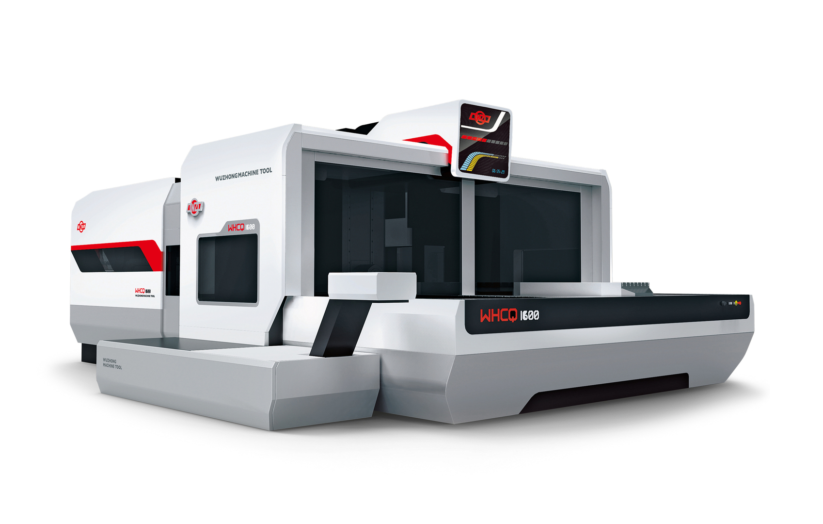 The WHCQ1600 is a CNC-controlled machining centre with a horizontal work spindle. Several largely dimensioned windows make it possible to monitor the production process from various different angles. Furthermore, a control display at the front of the machine indicates the current processing status, and the standing surfaces have an anti-slip coating.