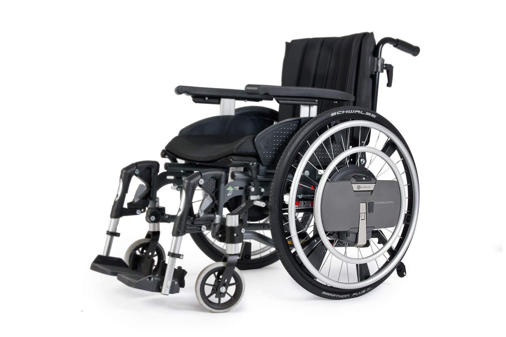 Wheeldrive combines an innovative propulsion system with robust materials and a discreetly sporty look, which suits any manual wheelchair.