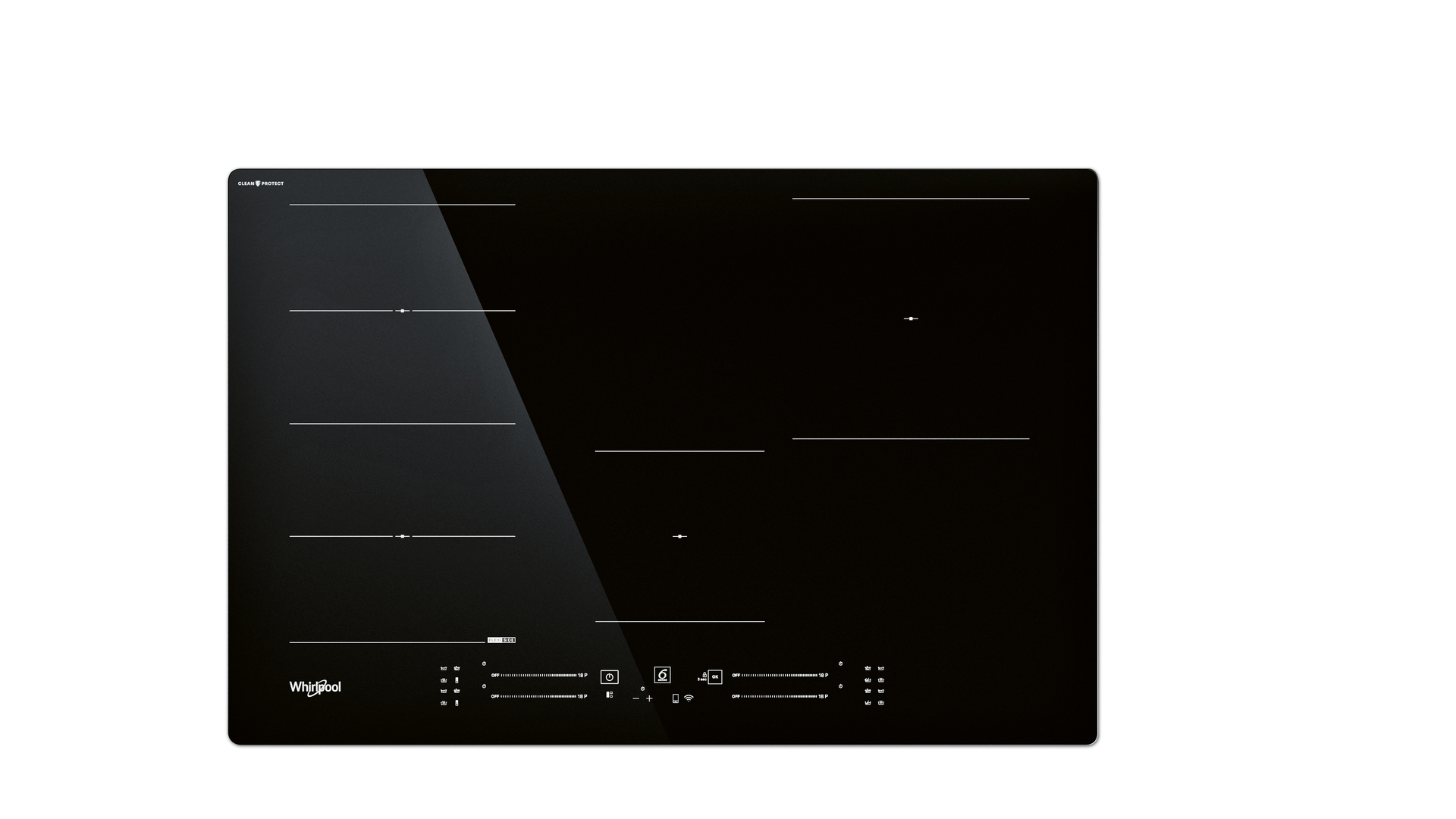 The Whirlpool Induction Hob with CleanProtect is a frameless induction hob made of black ceramic glass with a nano-coating, which enables the removal of stains and food residue without the use of aggressive cleaning agents. The surface is thus permanently protected against streaks and scratches. The appliance has four flexible cooking zones, facilitating the use of large pots and pans. Each zone offers presettings for cooking, melting, boiling and keeping food warm, ensuring automatic selection of the most appropriate power level.