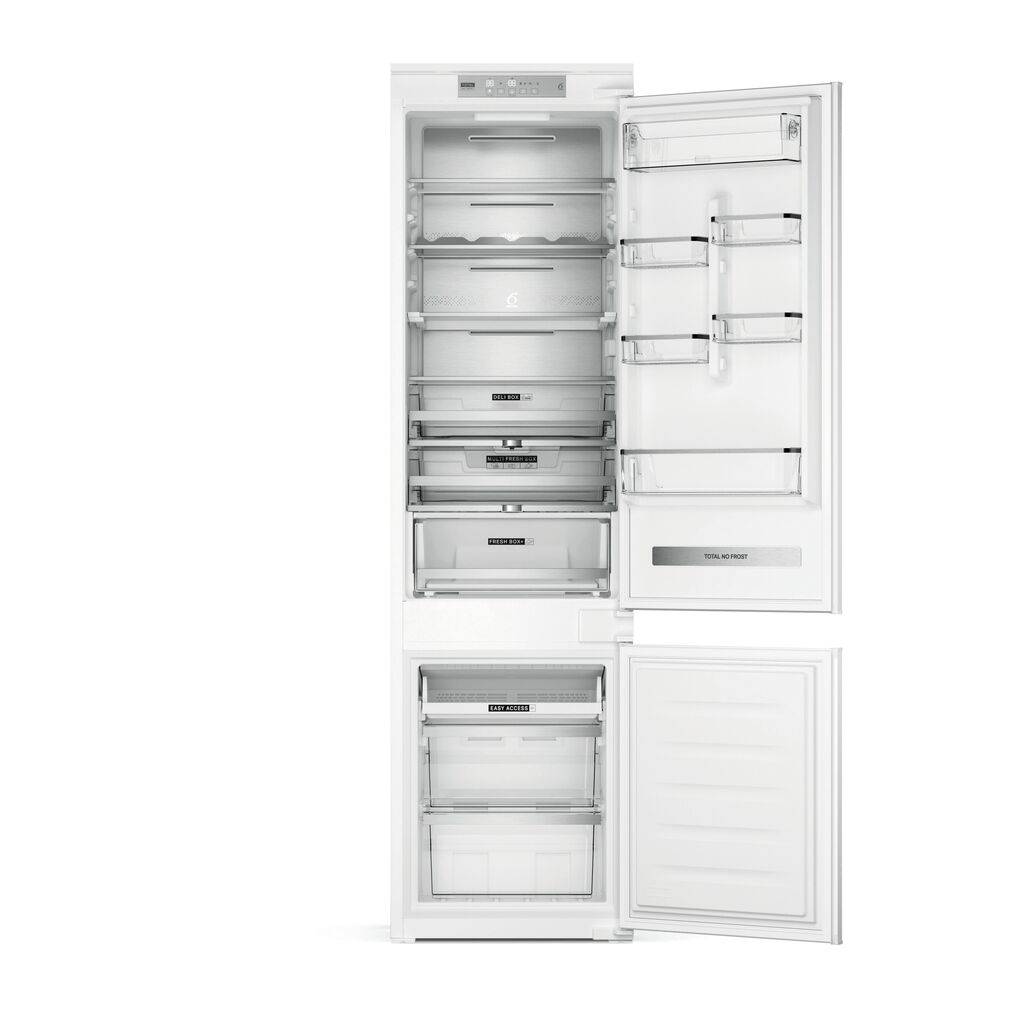 This built-in refrigerator from the Whirlpool W Collection is geared towards an upscale user experience. With this in mind, the appliance offers plenty of space for food. The clear, well-illuminated interior can also be used flexibly according to the user’s specific needs. Innovative technologies such as Whirlpool’s 6TH SENSE Technology ensure ideal storage conditions for all types of food. The Total No Frost System makes food storage effortless. A special technical feature is the ZenInverter Technology, which optimises efficiency and makes the refrigerator quiet in operation at 32 dB.