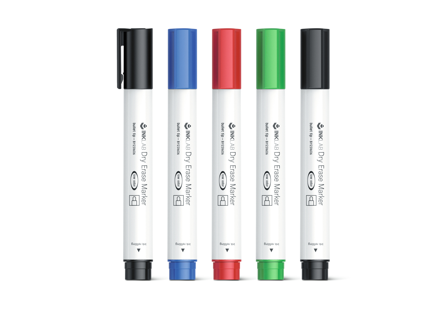 The well-defined lines that divide the functional areas of this whiteboard marker give it a clean and distinctive look. As a contribution to reducing waste and thus environmental protection, the pen can repeatedly be refilled with ink. To do this, the back cover just has to be lifted slightly and rotated. In contrast to traditional, alcohol-based ink, this marker pen uses a water-based whiteboard ink which has the advantage of not having an unpleasant or irritating odour.