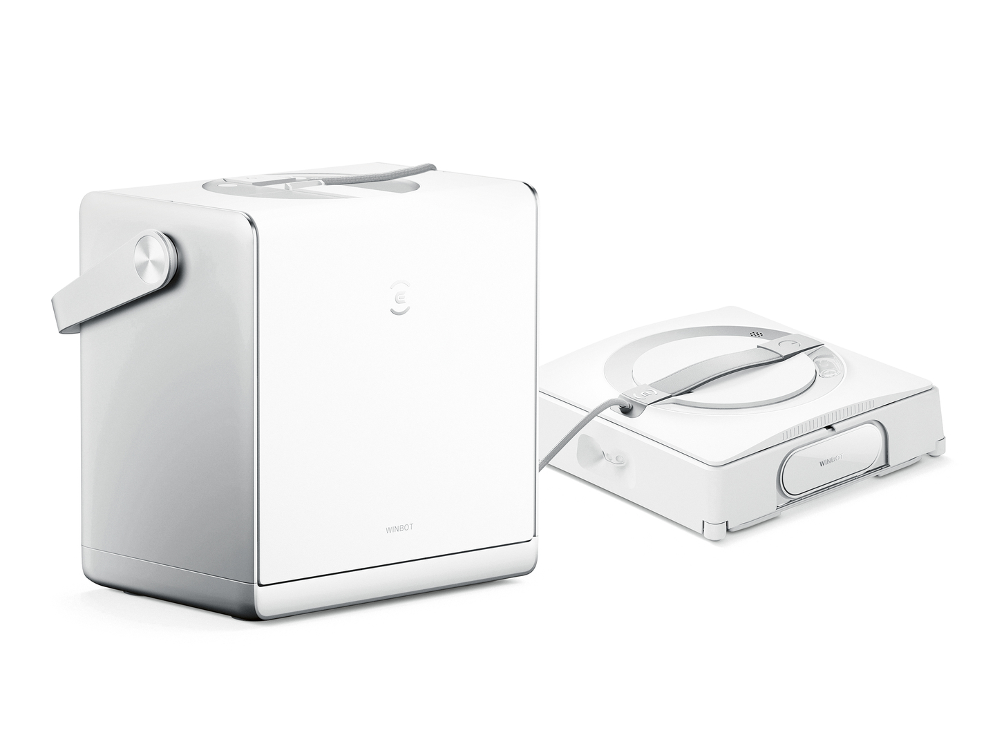 WINBOT W2 is a window cleaning robot with a portable base station. It can clean both vertical and inclined window surfaces, for example in a conservatory. The base station features an automatic cable winding mechanism to avoid cable clutter and an integrated power supply. This is useful when there is no power socket near the window. The cleaning process can be individually controlled via the corresponding app. For transport, the robot is simply stowed in the base station.