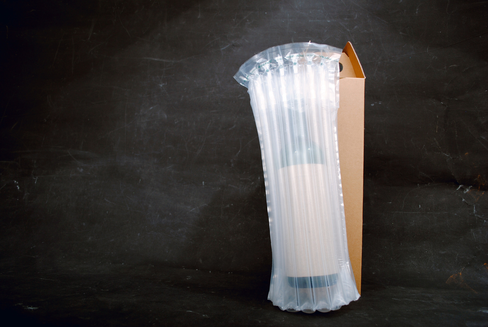 The Wine Airpcs inflatable air cushion protects wine bottles from breaking during transport and keeps their temperature at a constant level for a certain period of time. The air tubes are separate from each other so that the protective function remains intact even if individual tubes are damaged. Furthermore, the packaging provides enhanced protection for the particularly fragile bottleneck. When not in use, the air can be let out and the packaging stored away to save space.