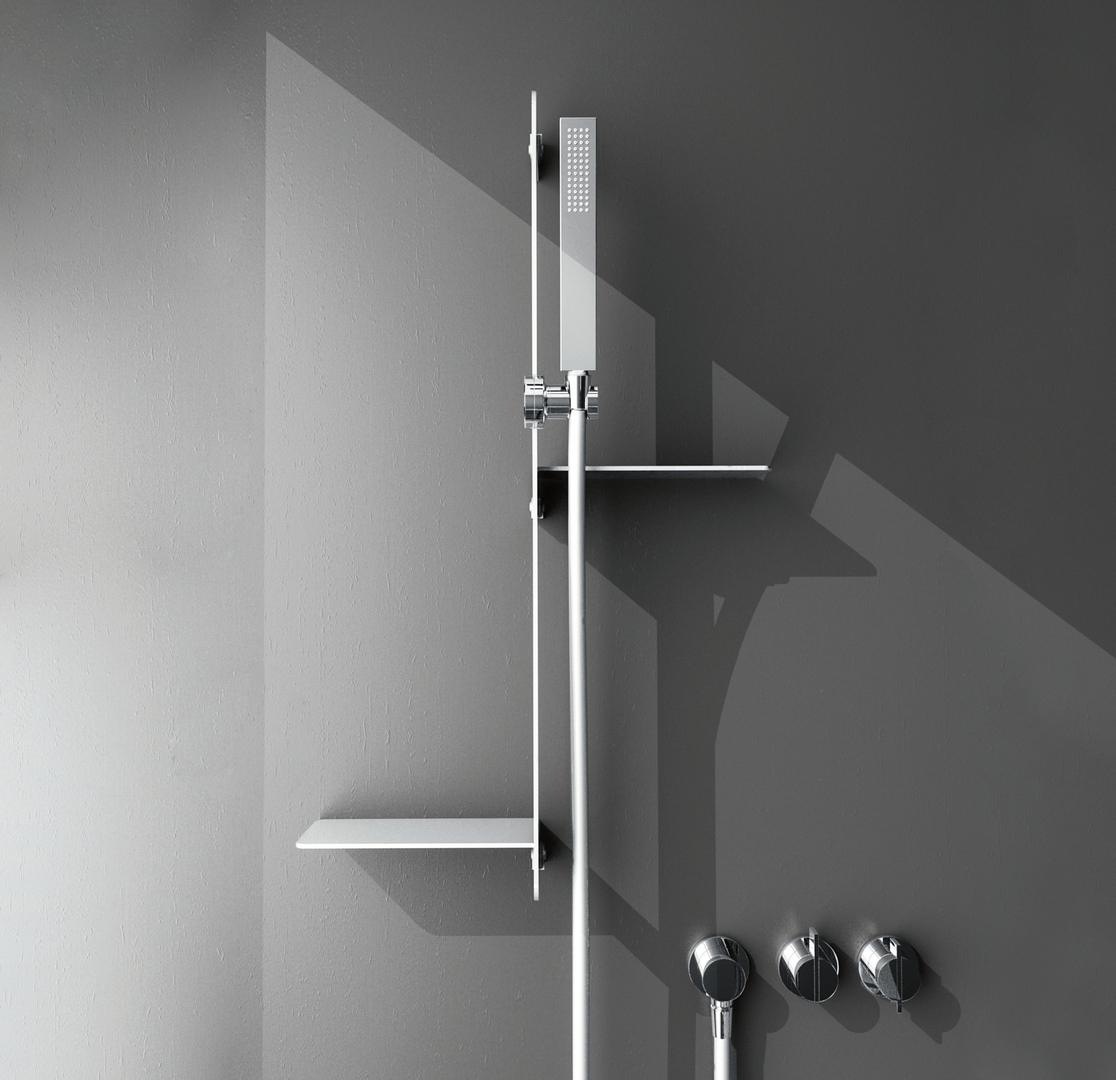 The Wings shower slide bar skilfully takes advantage of aluminium as a material. It offers plenty of storage space and a pleasant kind of functionality.