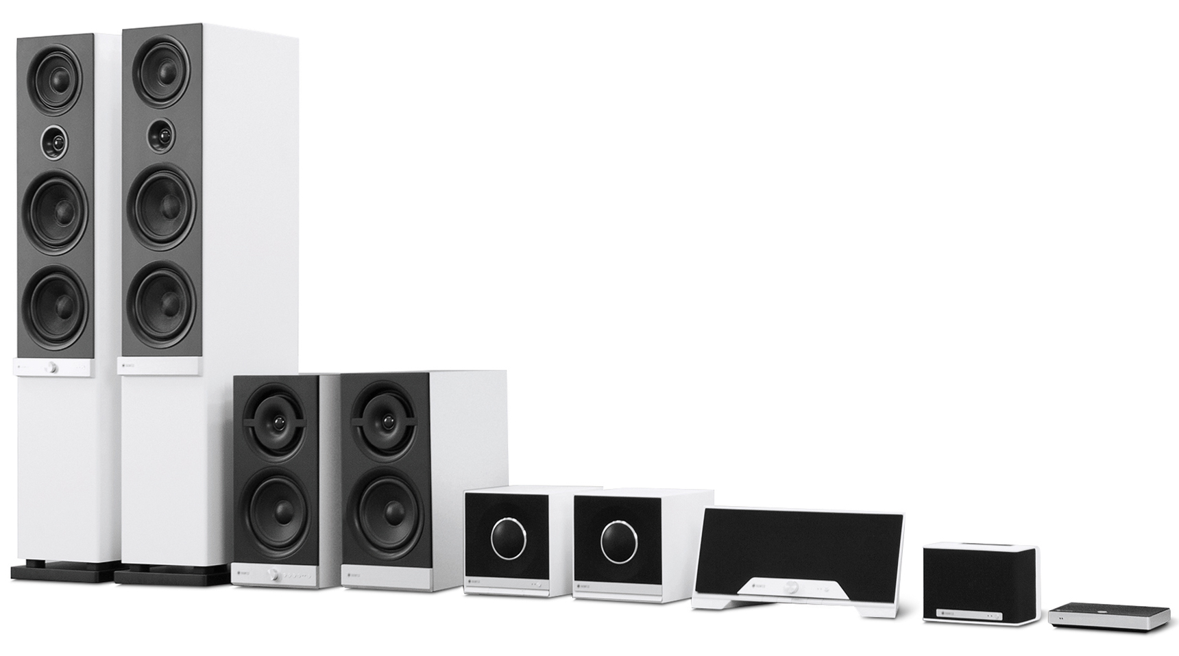 The Wi-Fi speakers enable audio streaming in any room. Advanced audio technology converts lossless digital files to produce genuine hi-fi sound. With elegant enclosures fashioned from real wood and aluminium, along with high-quality audio components and an intuitive user interface, they offer unlimited music enjoyment. The system comprises compact all-in-one speakers and also stereo floorstanding speakers to meet any need.
