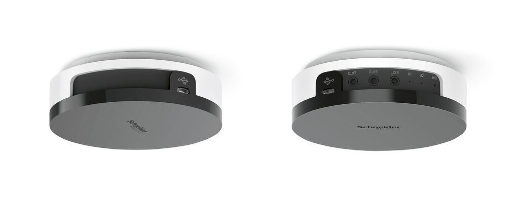 As part of a smart home system, this device uses infrared technology and an app to control equipment such as the television, the air conditioning and the stereo system. Assembly is easy. All users need to do is to twist the cover. This applies both for changing a battery or for installing the device on the ceiling. No additional battery cover is required which makes the device more environmentally friendly. Although the USB is not in line with the other interfaces, their layout looks harmonious. With its balanced appearance, this device easily adapts to its surroundings.