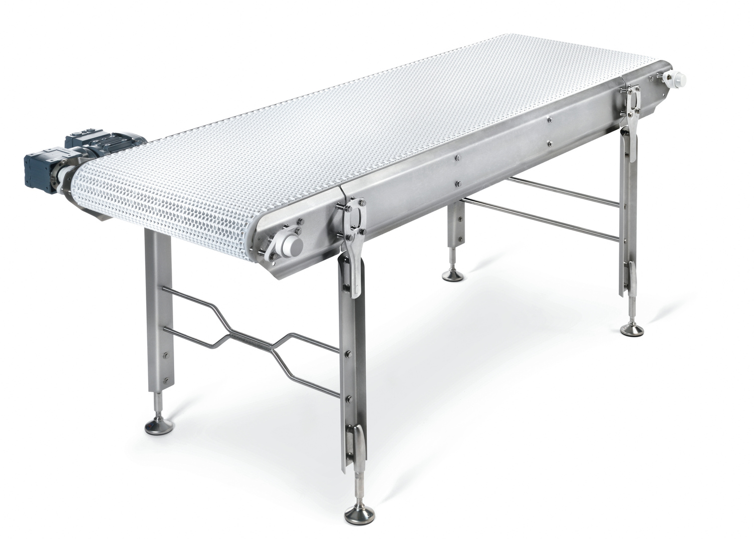 The WLX modular wide belt conveyor in stainless steel is available as a module or a complete system. The conveyor is suited for the handling of pouches, liquid carton packaging or any packed food product. Focus areas of the design are cleanliness, operator safety and a low cost of ownership. The chain can easily be lifted by the operator, reducing heavy lifts and making the interior easy to clean. Small openings prevent pinch points, and there are no sharp edges. The conveyor design facilitates a constant cleaning result and short drying time, adding valuable production time.