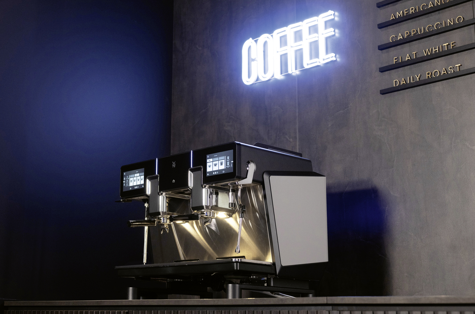 The WMF espresso NEXT is a semi-automatic espresso machine that takes on time-consuming tasks such as grinding, portioning, tamping and milk frothing. With touch displays, clever positioning of the controls, and status messages on the monitor, it is particularly easy to use. The sound of the machine during the brewing process, as well as its external shape featuring two distinctive, polished brewing groups, is reminiscent of a traditional espresso machine.
