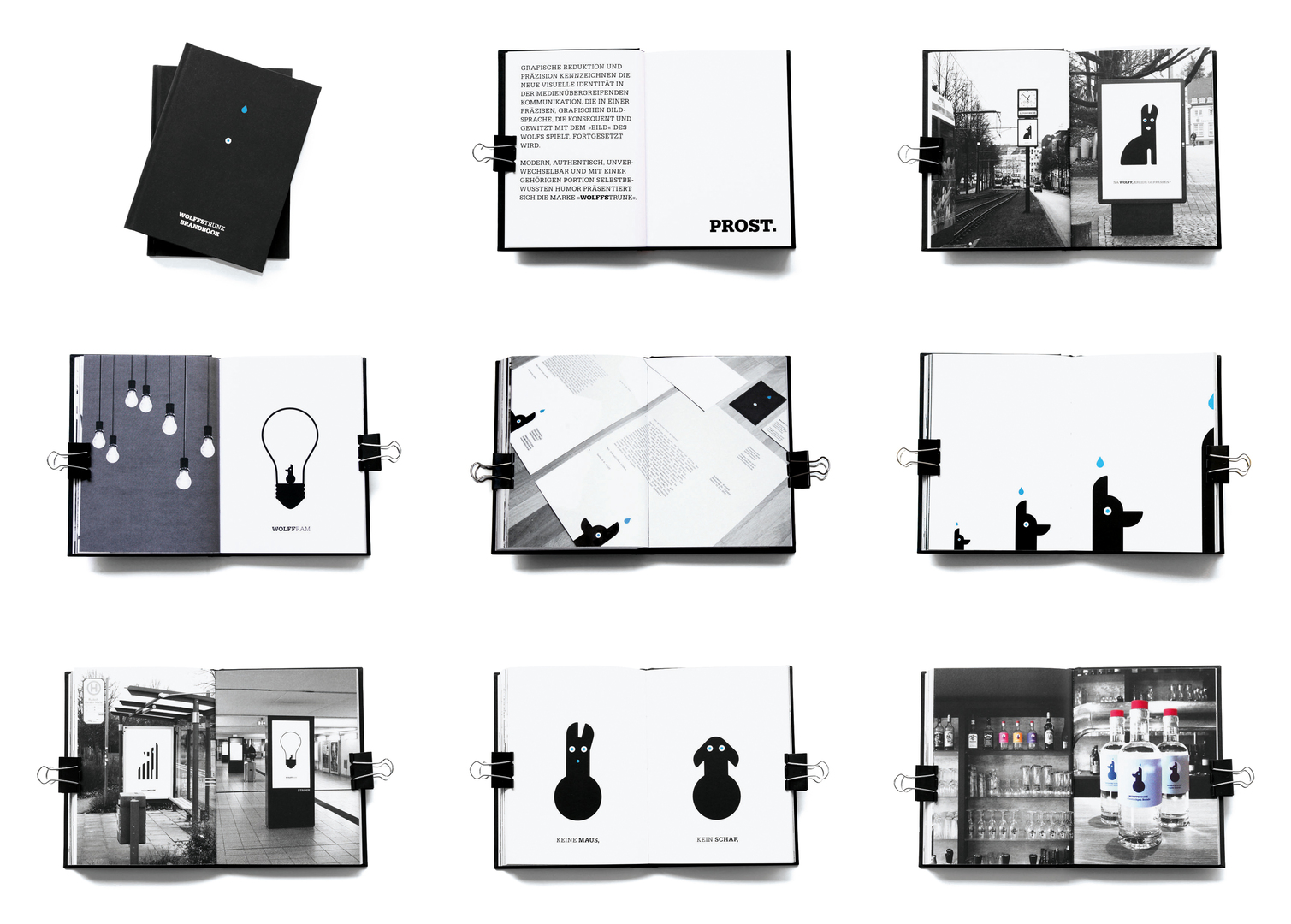True to the motto “less is more”, graphic reduction and precision characterise the corporate design of the private distillery from Extertal, which sells under the brand name “Wolffstrunk” (wolf drink) finest fruit schnaps and fruit liqueurs. The corporate design plays with the “wolf” metaphor – its graphically simplified image provides the basis for the visual identity of a range of media. The corporate design includes the design and concept of a composite mark, business stationery, bottle labels, posters and a brand book as well as a short website animation.