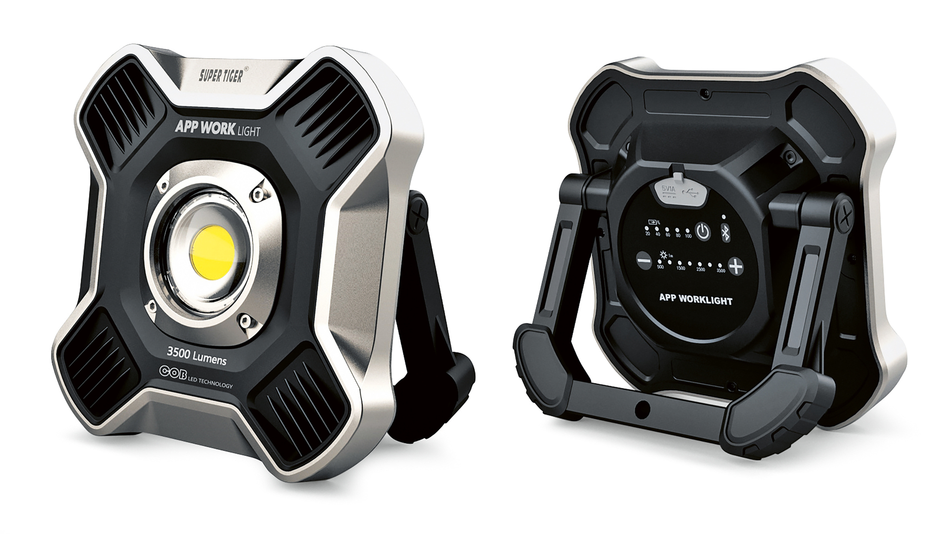 This work light has been developed to provide wide-range illumination for night-time outdoor work or car repairs. Its concept picks up on typical aspects of car design; Thus, the front panel of the light is reminiscent of a radiator grille. The high light output of 3,500 lumens can be set to seven brightness levels. The large capacity battery with 4,000 mAh achieves a long runtime and also allows for the charging of mobile phones. An app provides convenient control from a distance.