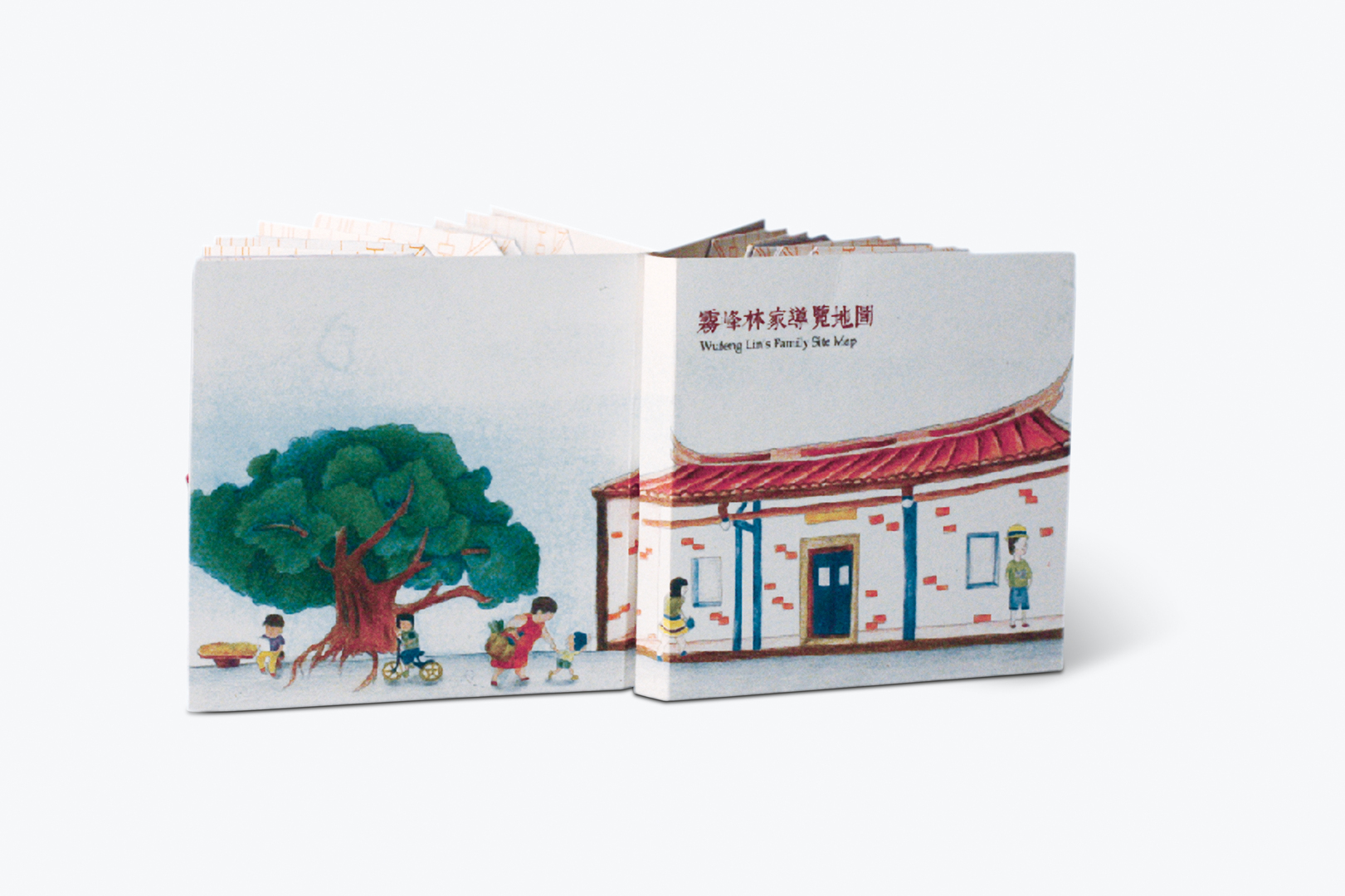 This updated guidebook introduces the “Wufeng Lin Family Mansion and Garden”, the residence of a Taiwanese family clan. Each of the pages with coloured illustrations describes the special features and the cultural richness of this residential complex. The design combines two- and three-dimensional elements and does not use simple orientation maps. Instead, sophisticatedly folded maps encourage the user to get actively involved in the exploration of the residence.
