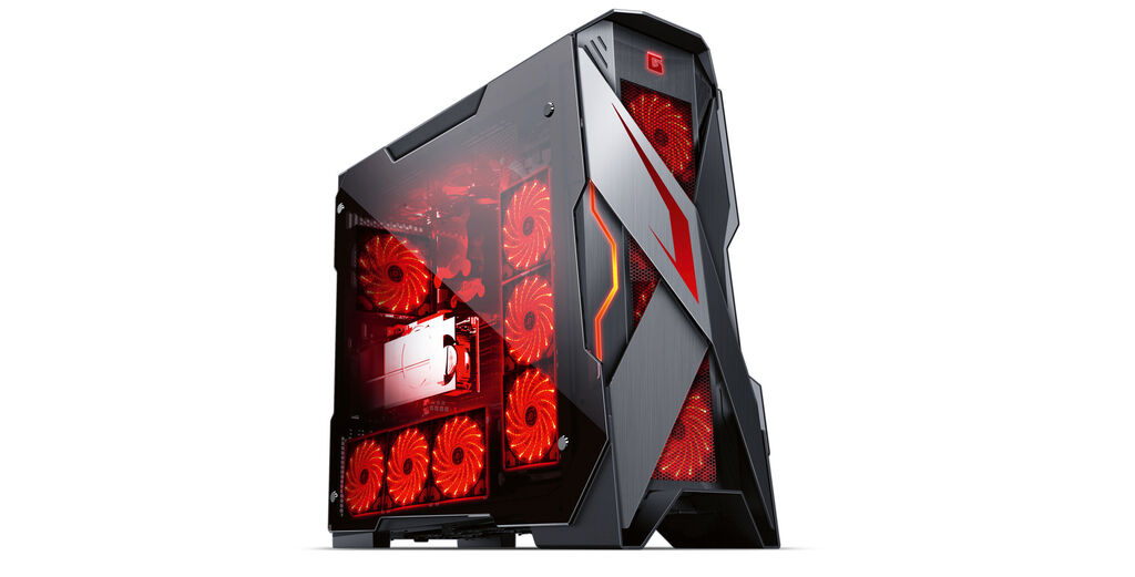 Inspired by the Greek god of war, Mars, this computer chassis stands out with its highly unique design. The materials processed are steel, brushed aluminium and tempered glass, giving the X-Mars a pronouncedly masculine appearance. The spacious chassis can accommodate up to 14 120 mm RGB fans, up to 11 3.5” drives as well as E-ATX motherboards and graphic cards with a length of up to 390 mm.