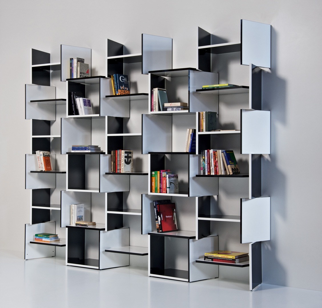 This shelf is simple and original just like the idea behind it. Produced in plain black and white it gives the impression of movement and dynamism.