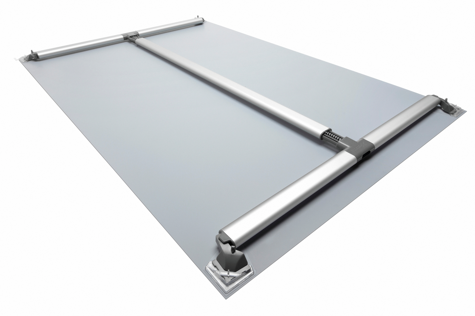 Xpozer is a unique system developed to display poster-size photos in an elegant way. They appear to float on the wall without a visible frame. To achieve this, the photo is printed on a plastic film which has four reinforced fastenings on the back. The hidden frame consists of three aluminium profiles, of which the centre one has a built-in spring which keeps the other two under tension. The two external profiles have rotating clamps which rotate the force of the spring through 90 degrees. This carefully thought-through distribution of tension ensures that the photo remains completely flat and taut.