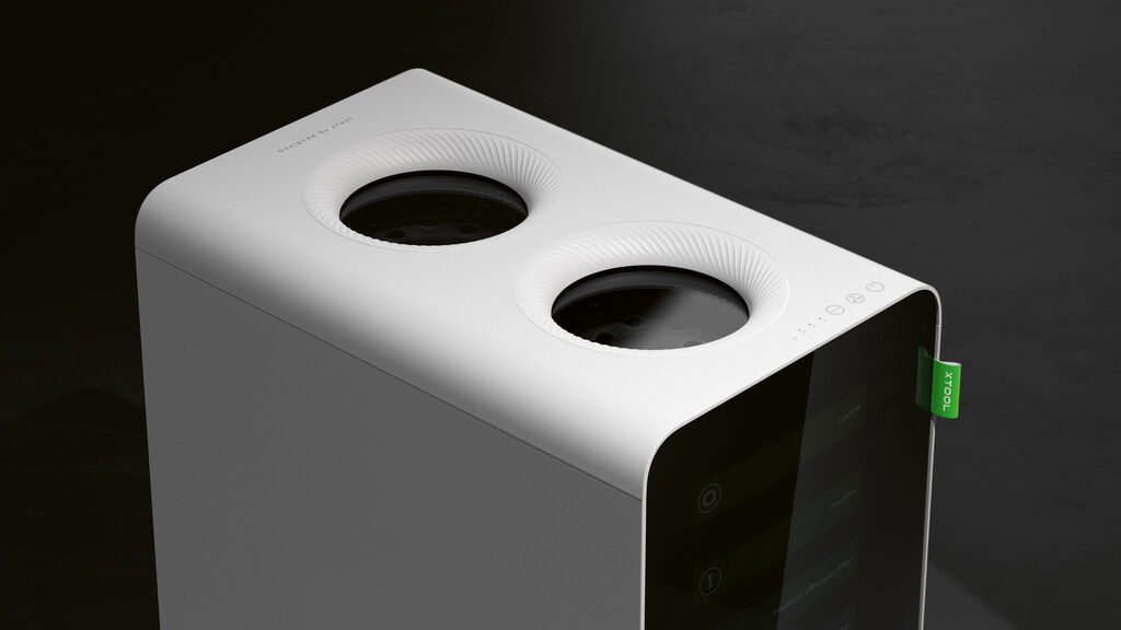 xTool SafetyPro AP2 is an intelligent air purifier that has been specially developed for laser processing. Equipped with powerful cyclone technology and a five-filter set, the device ensures effective protection against smoke, odours and harmful gases, creating a healthy and safe working environment. The technologically sophisticated motor ensures quiet operation with a maximum noise level of 55 dB. The inviting and simple appearance blends harmoniously into studios and living spaces.