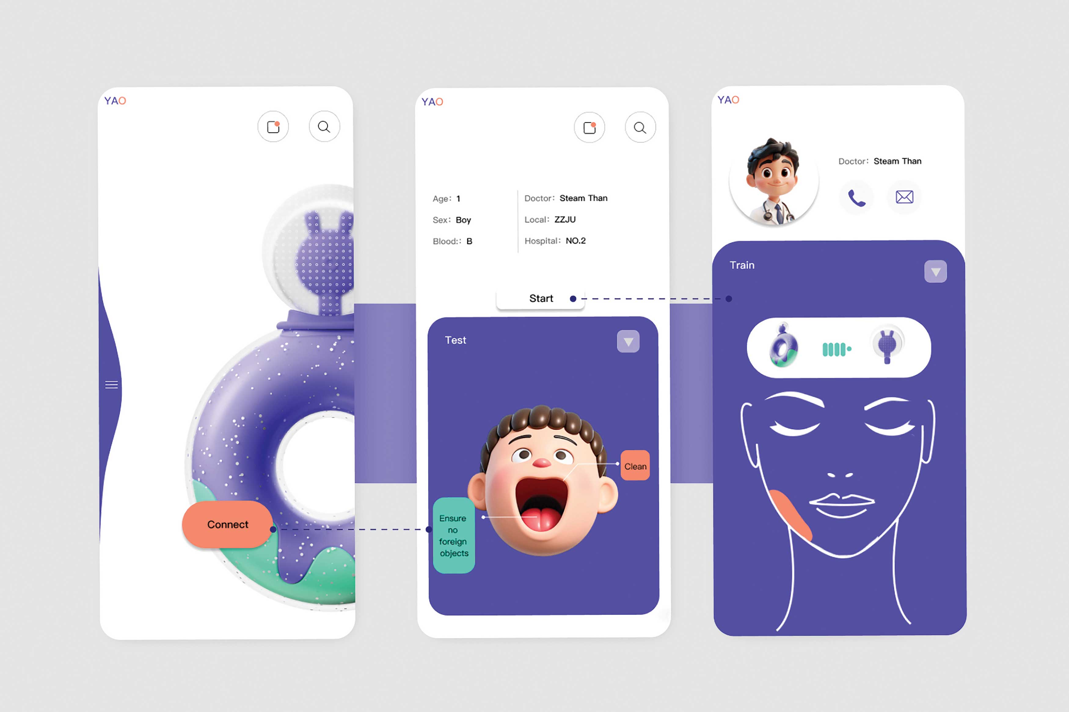 Yao is a paediatric oral muscle strengthening device that targets weak lip and biting muscles. It uses a centrifugal shaft mechanism, in which motor activation drives a reduction gear that controls the shaftís speed. The centrifugal force inflates an air sac, enabling dynamic adjustment of biting force. Yao also features integrated sensors and an app for real-time monitoring and feedback.