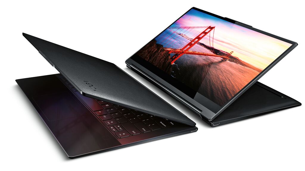 The Yoga 9i with its genuine leather cover offers a new experience in terms of form and material. It looks luxurious and elegant. Thanks to its 360-degree rotating hinge, this notebook is highly functional as it lends itself for use as both a laptop and a tablet. The end-to-end glass palm rest feels comfortable in use and is highly pleasant to the touch. The integrated Dolby Atmos speaker system delivers high-quality audio experiences.