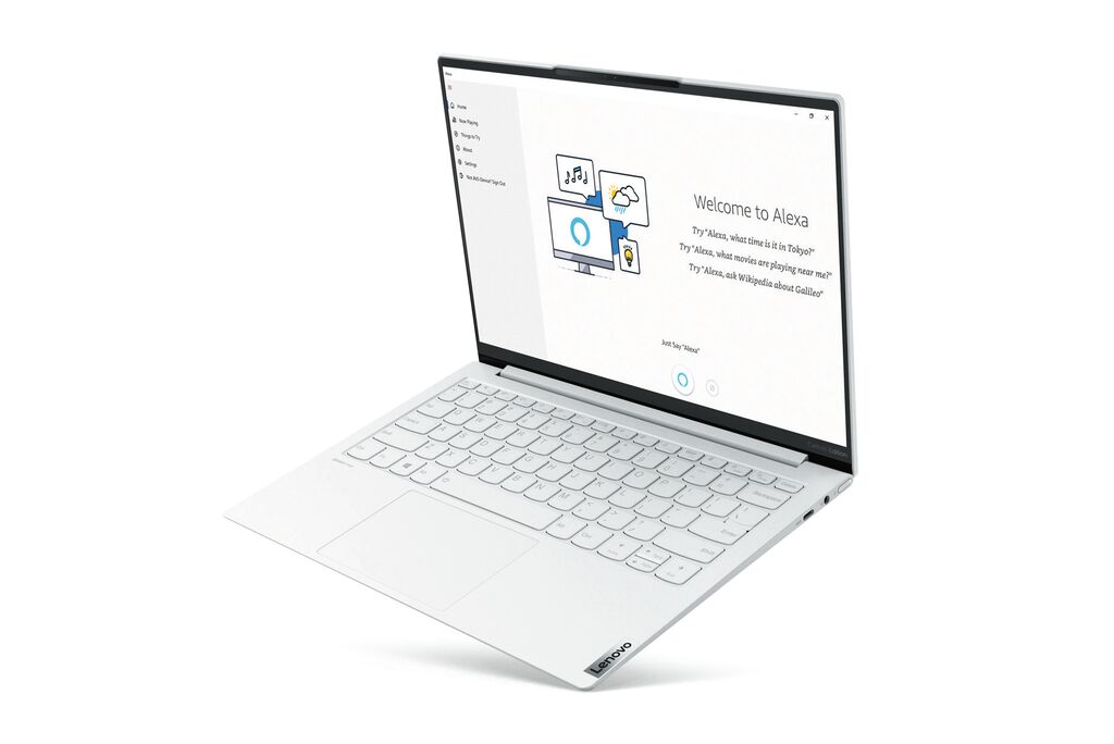 The 13” Yoga Slim 7i Carbon laptop is characterised by a very slim chassis and a weight of only 990 grams. To achieve this, the cover was fashioned from carbon and the body from an aluminium-magnesium alloy. The pearl-white finish offers a silky feel and gives the laptop an exclusive look. Thanks to the built-in Dolby speakers and the infrared camera, the device is also well suited for multimedia applications and video conferencing.