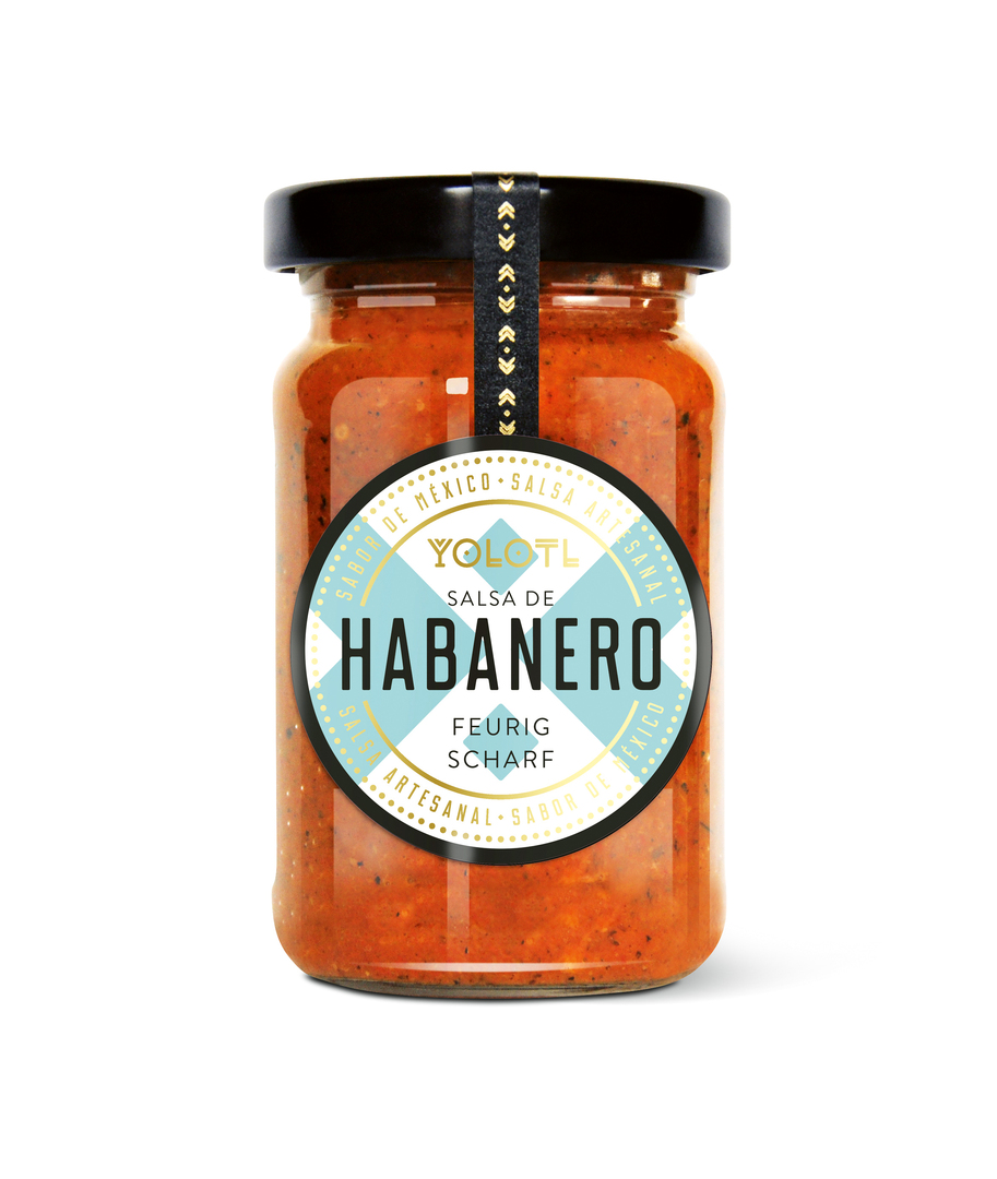 This packaging for a Mexican salsa conveys the authenticity of a “Sabor de México” (Taste of Mexico). The brand name YOLOTL means “heart” in the indigenous language Nahuatl of the Aztecs. In line with the visual concept, following the motto “Modern Aztec”, the packaging and logo design reinterpret the Aztec roots as well as elements from the visual language of this ancient culture and translate them into a modern approach. To differentiate the sauces, the design works with a distinctive symbol and colour for each flavour. The labels are printed on uncoated paper and refined with gold hot-foil stamping.