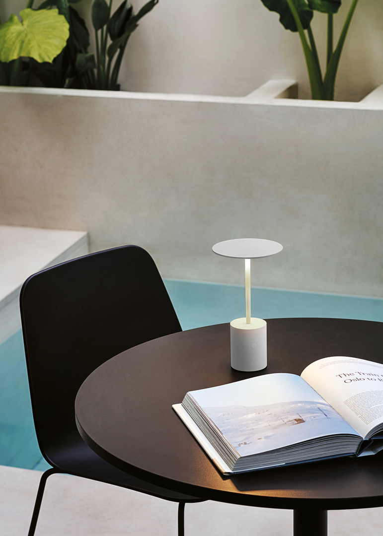 This handy table lamp inspires as a compact product solution that is both visually appealing and technically sophisticated. Yoru is reduced to a clearly structured contour that conceals contemporary functionality as well as an effective rechargeable battery in the lamp’s stable base. The elegant appearance of the portable lamp attracts attention and underlines the special aesthetics of the lighting.