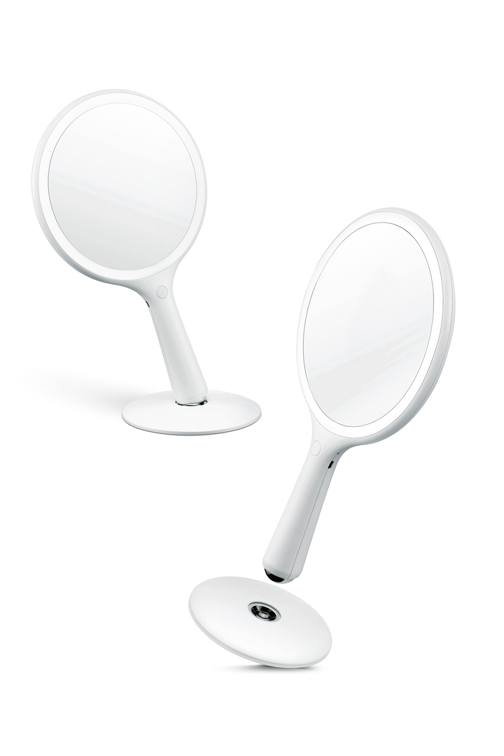 The YOYO can be used both as handheld mirror and mounted to the base. By use of a strong magnet, the grip snaps safely into place but can also be swivelled to the appropriate angle in the base. An LED ring consisting of 64 lamp beads provides full and clear illumination which appears soft for protection of the eyes. With just one intuitively operable button, whiteness and colour temperature are measured. A 2,000 mAh lithium battery supplies power for up to one week.