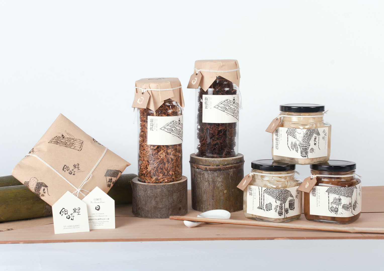 The brand name Yu-Shih-Liang is derived from a Taiwanese saying which translates as “remember to preserve the food even on sunny days”. This refers to the high quality of the products made by a farming family that produces them according to tradition and in harmony with nature. In order to visualise this, the corporate identity system uses engravings of a barn and a drying ground – both essential features of a typical farmyard. The sun and rain that farmers rely on every day are represented by Chinese radicals to indicate the dried food series and the pickled bamboo shoots series.