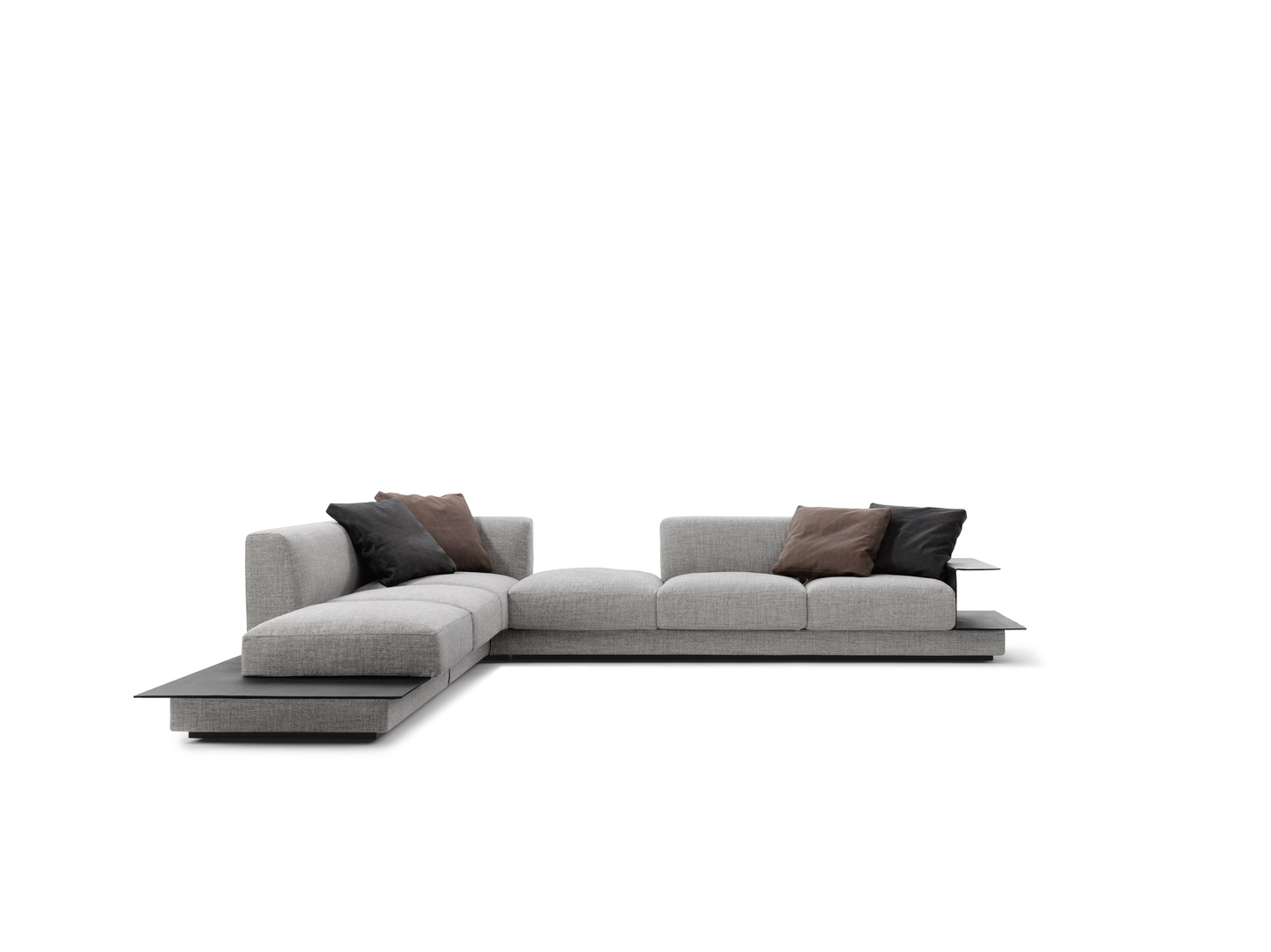 This range of upholstery offers very comfortable spacious seating. All-encompassing and modular, the interaction of volumes with deep seat elements and opulent upholstery creates a sofa landscape for the entire family, friends and guests. Whether as a single sofa, recamiere or large corner configuration – there are a range of shapes for individual lifestyles from cosy apartment to spacious loft. But Yuuto is much more than a landscape of cushions. The “coussins indépendants” were developed in the search for added comfort: a framework, stretched straps, with soft upholstery on top. Every seat cushion is effectively a sofa in itself. Top-quality surfaces draw attention to the detail: upholstered areas made of natural fabrics, armrests and boards in sturdy saddle leather.